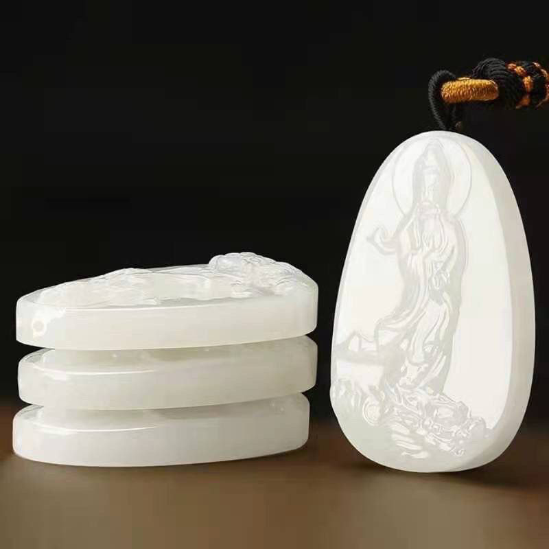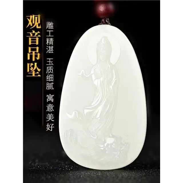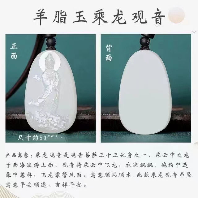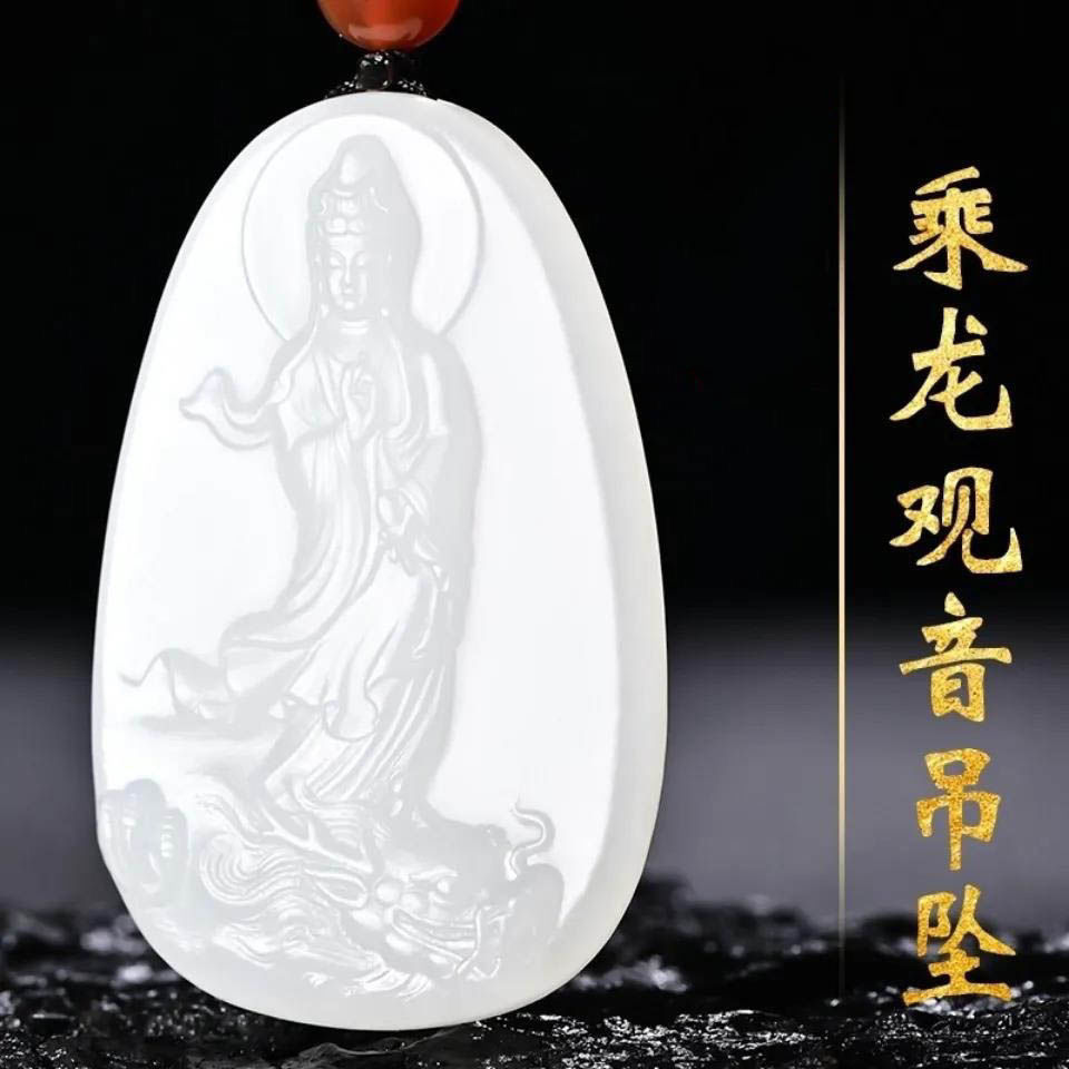 天然和田羊脂白玉观音玉坠男款护身乘龙观音菩萨高档玉石吊坠项链