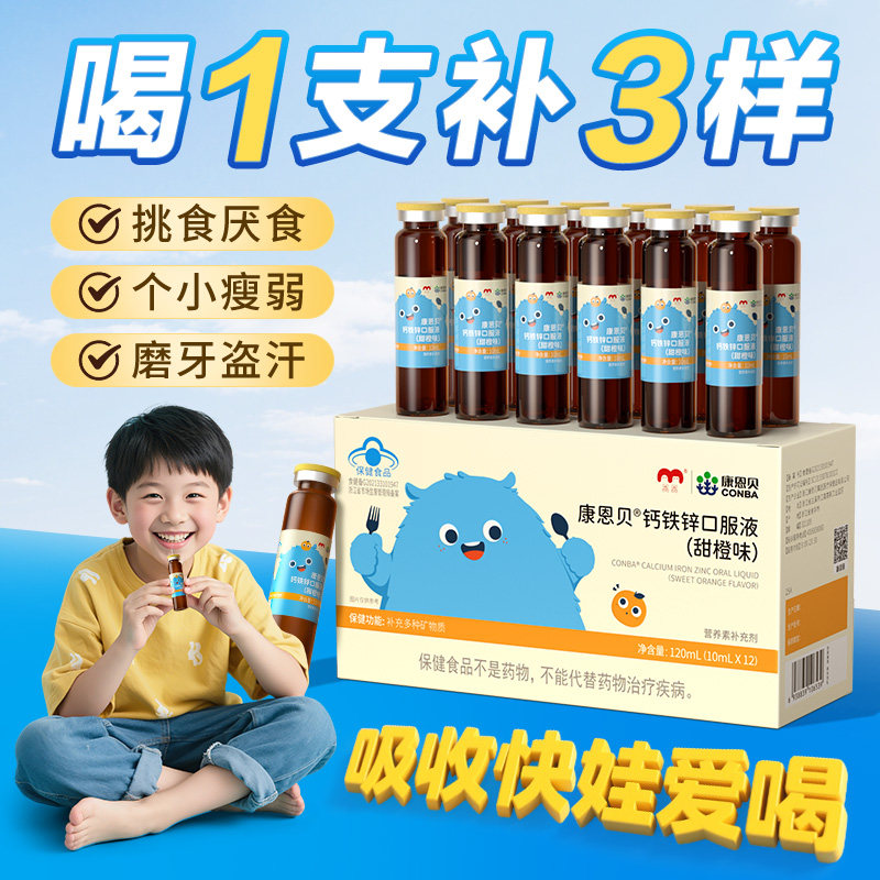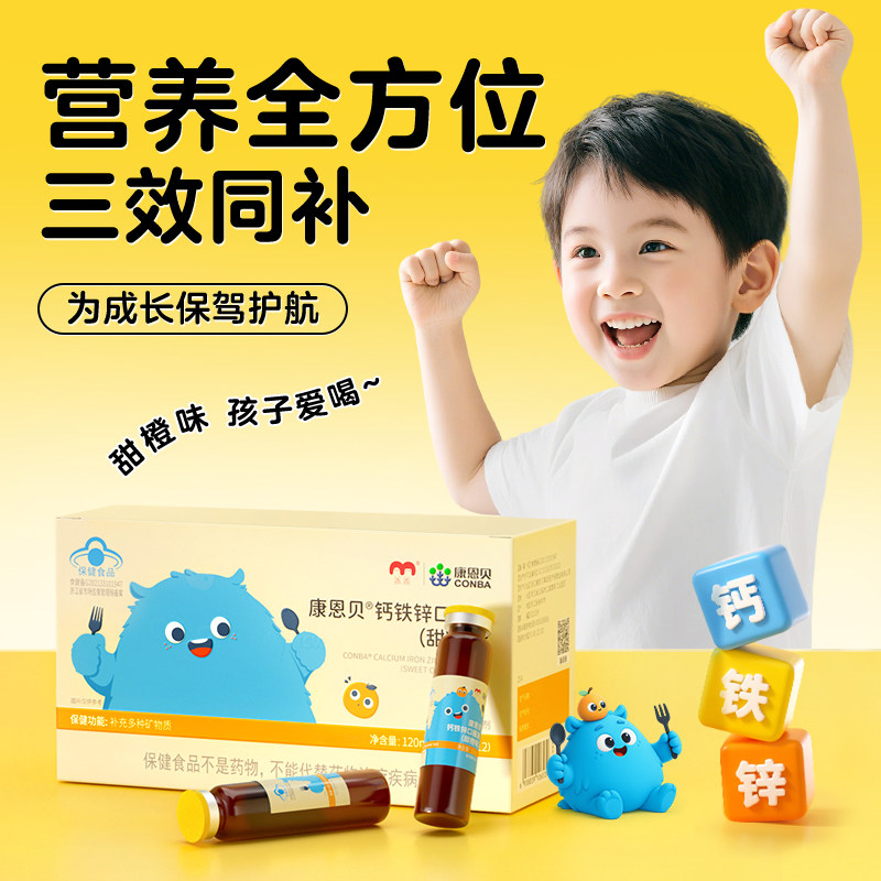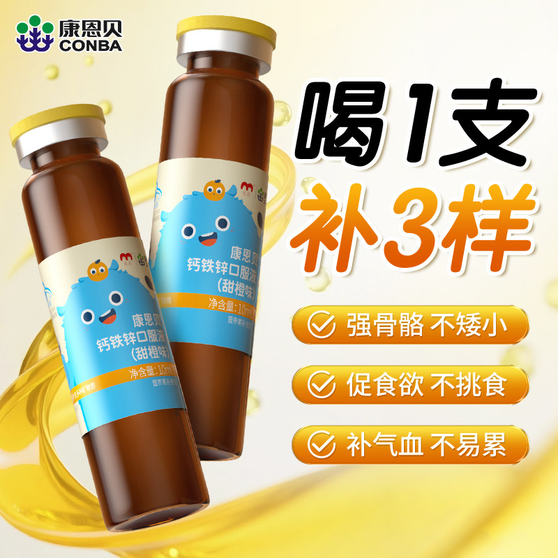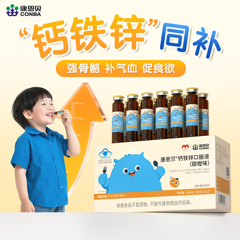 康恩贝钙铁锌口服液儿童补钙液体钙成长增加强免疫力长高青少年