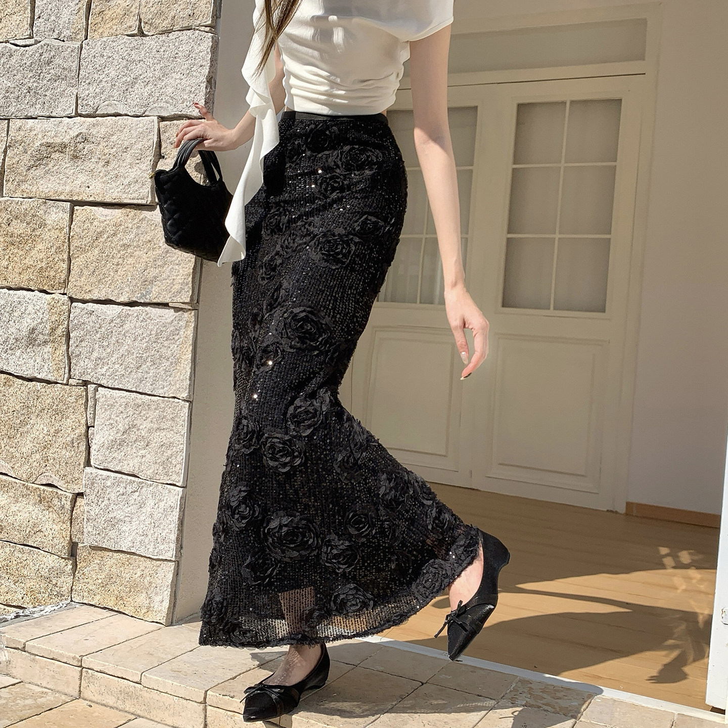 2026春季新款小香风立体花裙子浪漫法式花朵长裙一步裙亮片鱼尾裙