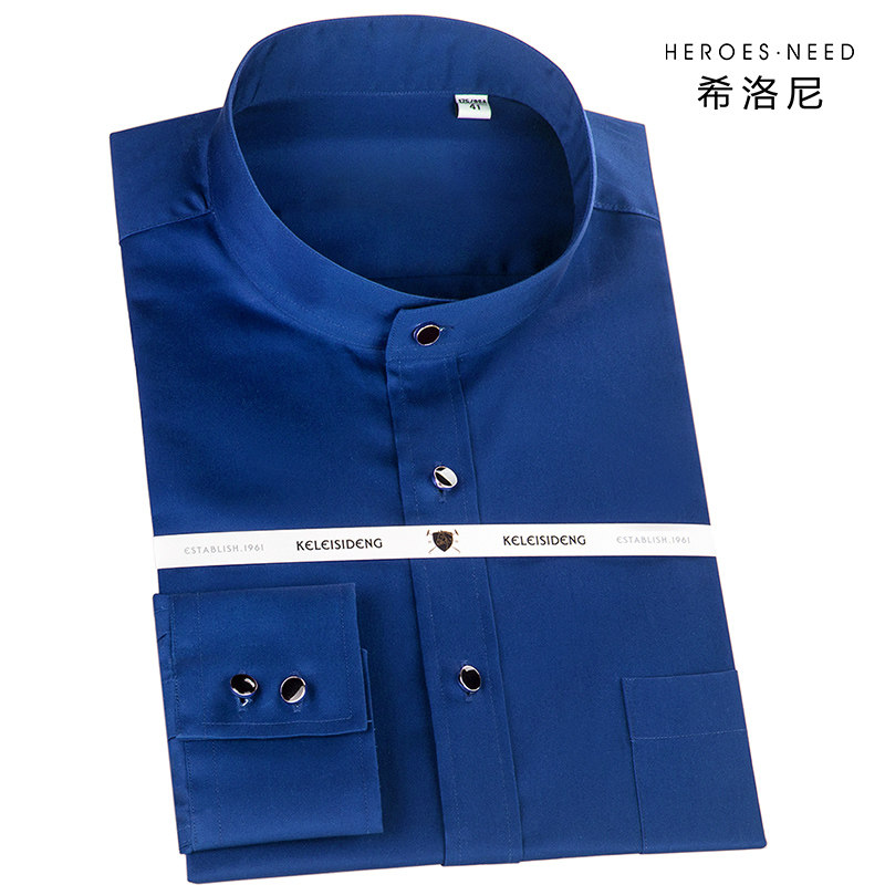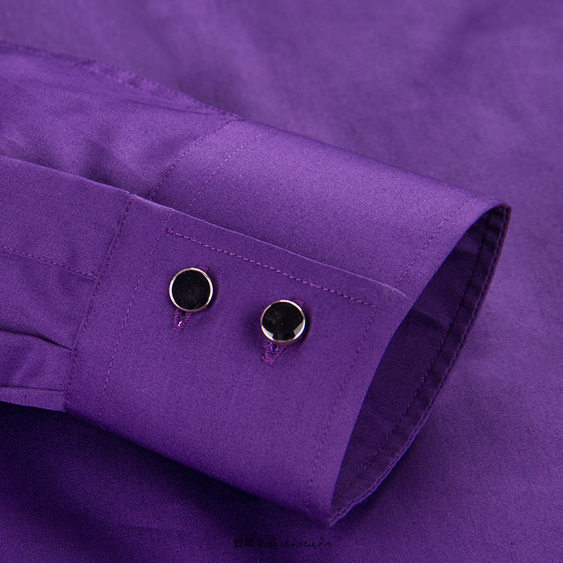 HN高档丝光棉中华立领深紫色衬衫男士长袖纯棉竖领圆领全棉寸衬衣