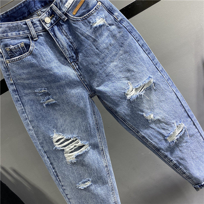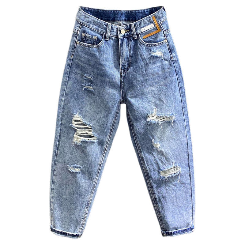 高腰破洞乞丐老爹裤女哈伦裤垮裤