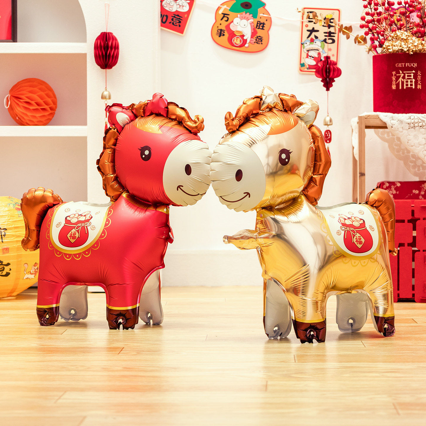 元旦小马气球儿童表演道具环创
