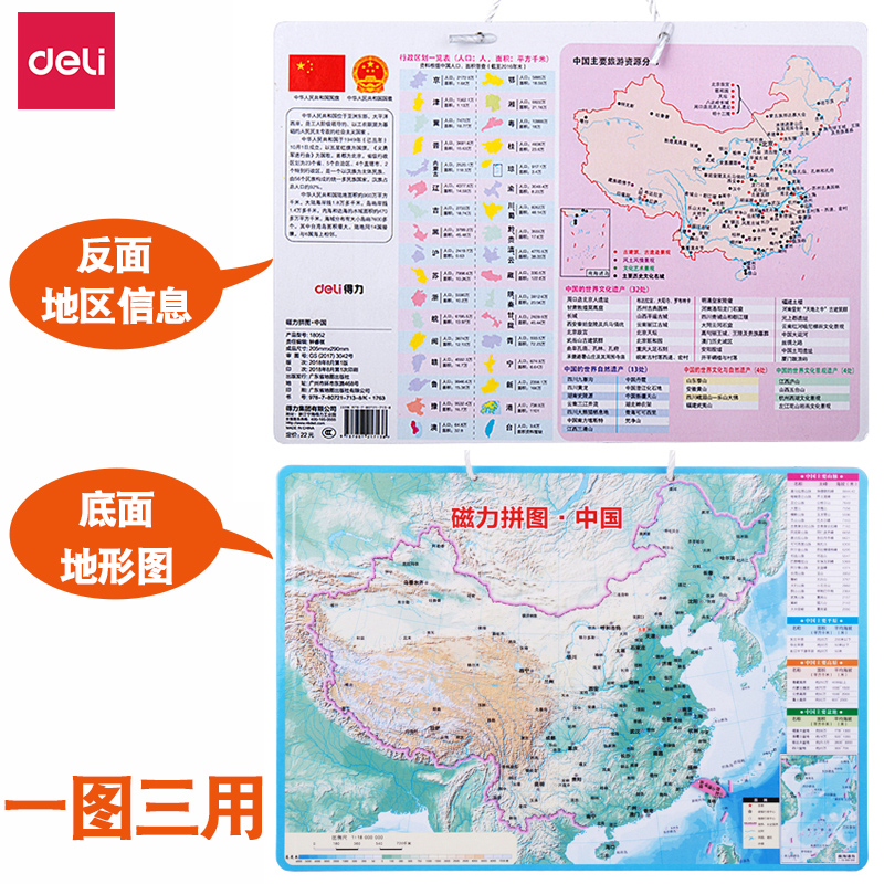 得力磁力中国地图学生儿童地理地形智力开发益智玩具世界磁性拼图