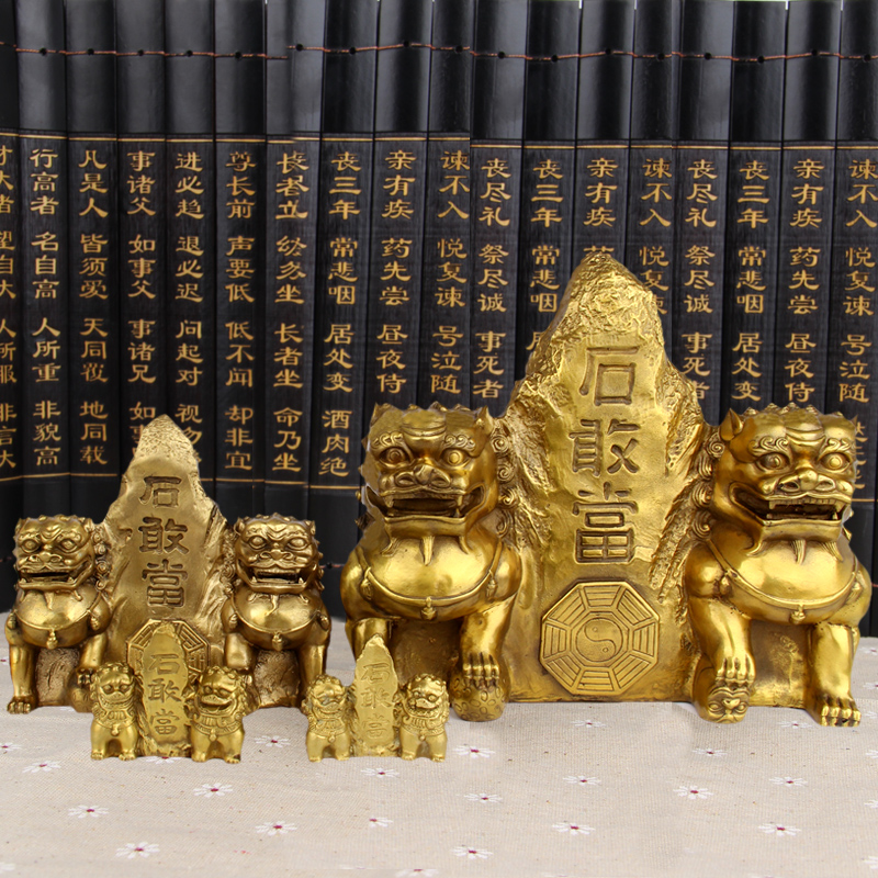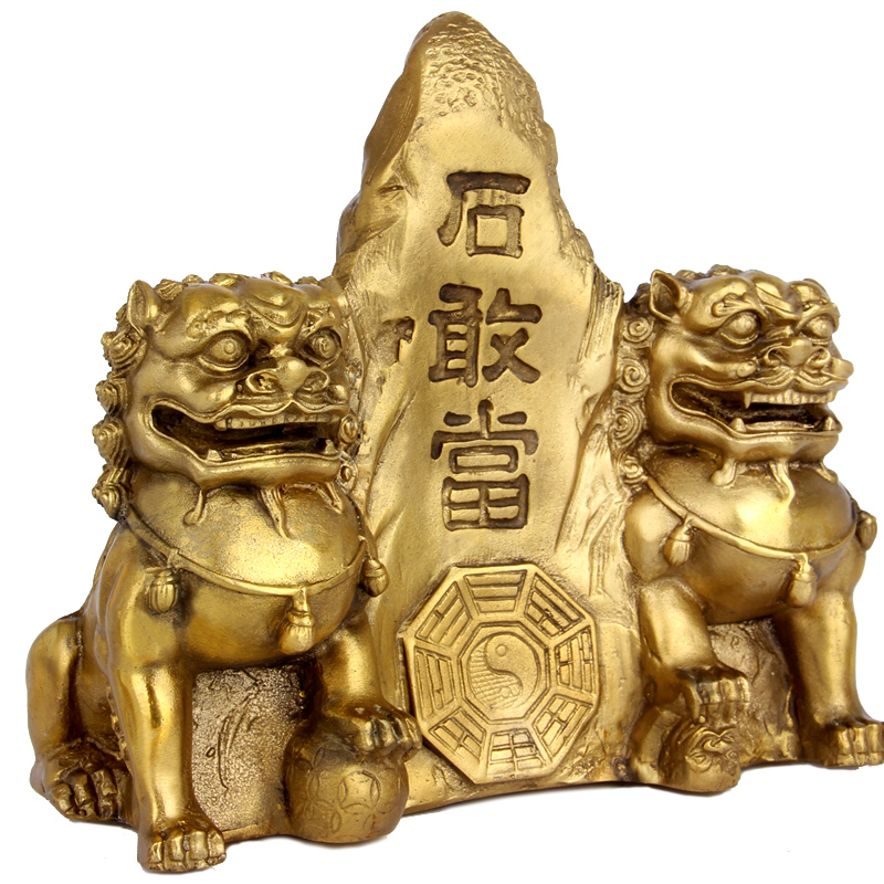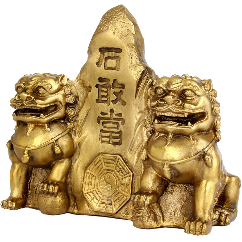 朴器 铜石敢当 双狮石敢当 铜狮子工艺礼品摆件