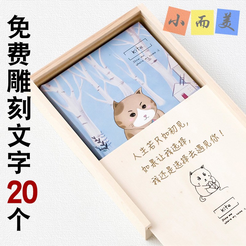 学生手帐本diy定制刻字365日记本恋爱记事本日程木盒装笔记本彩页