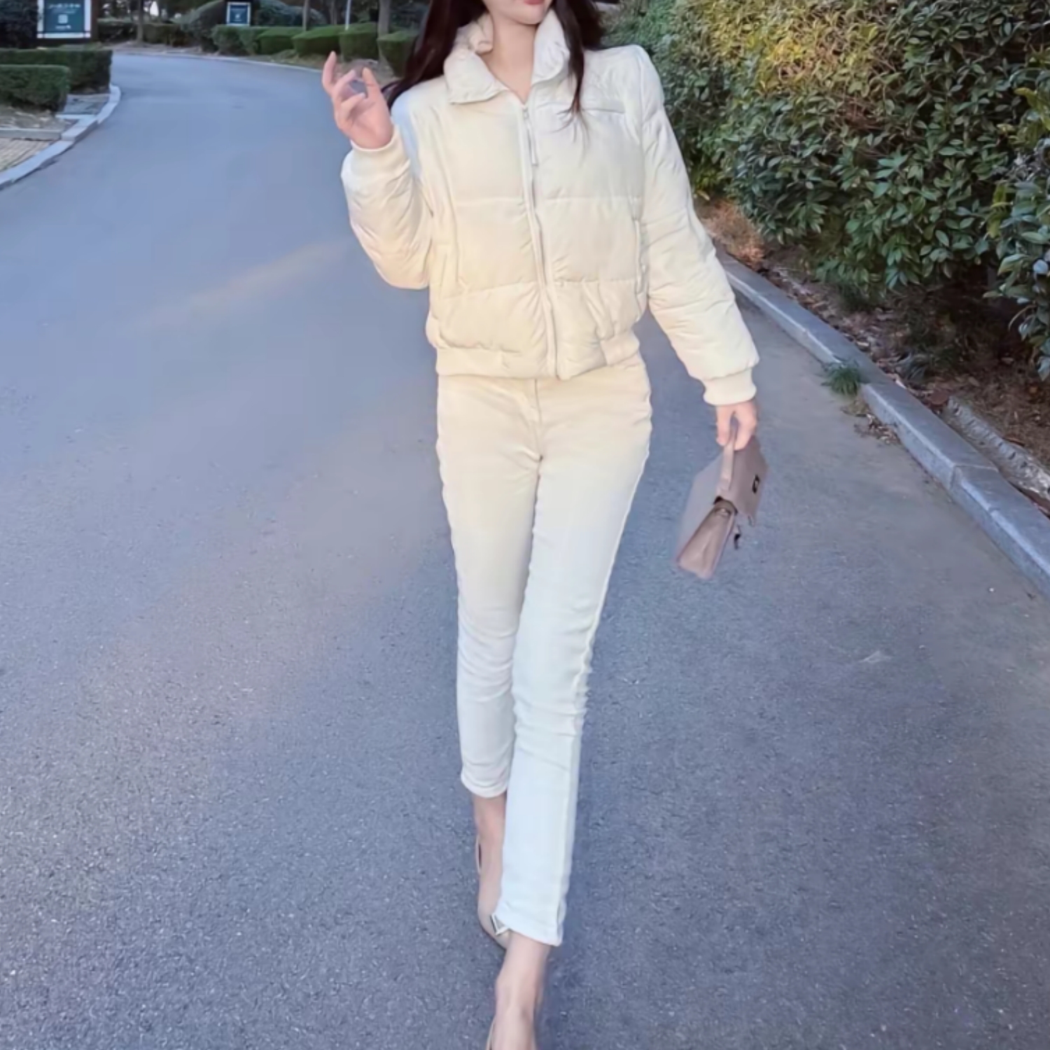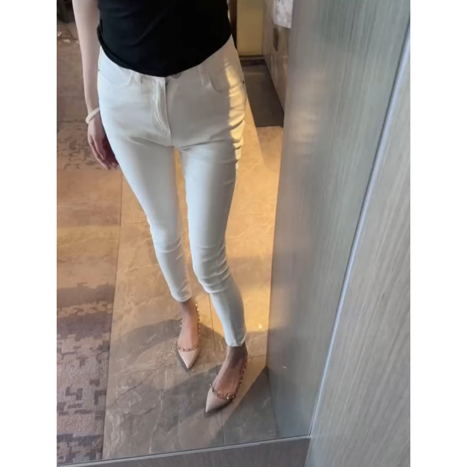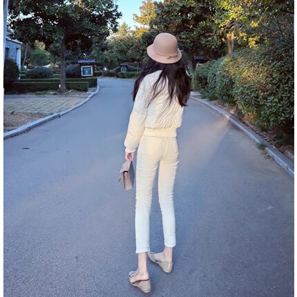 韩版春秋新款白色修身小脚牛仔裤女士舒适百搭高腰紧身铅笔长裤子