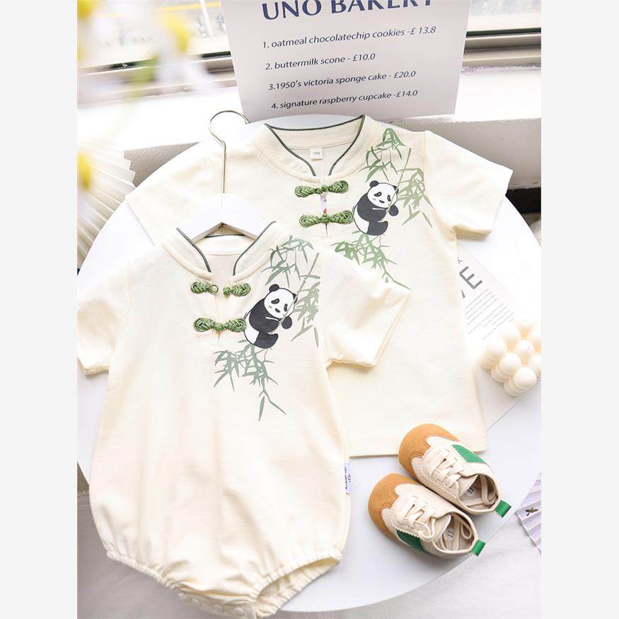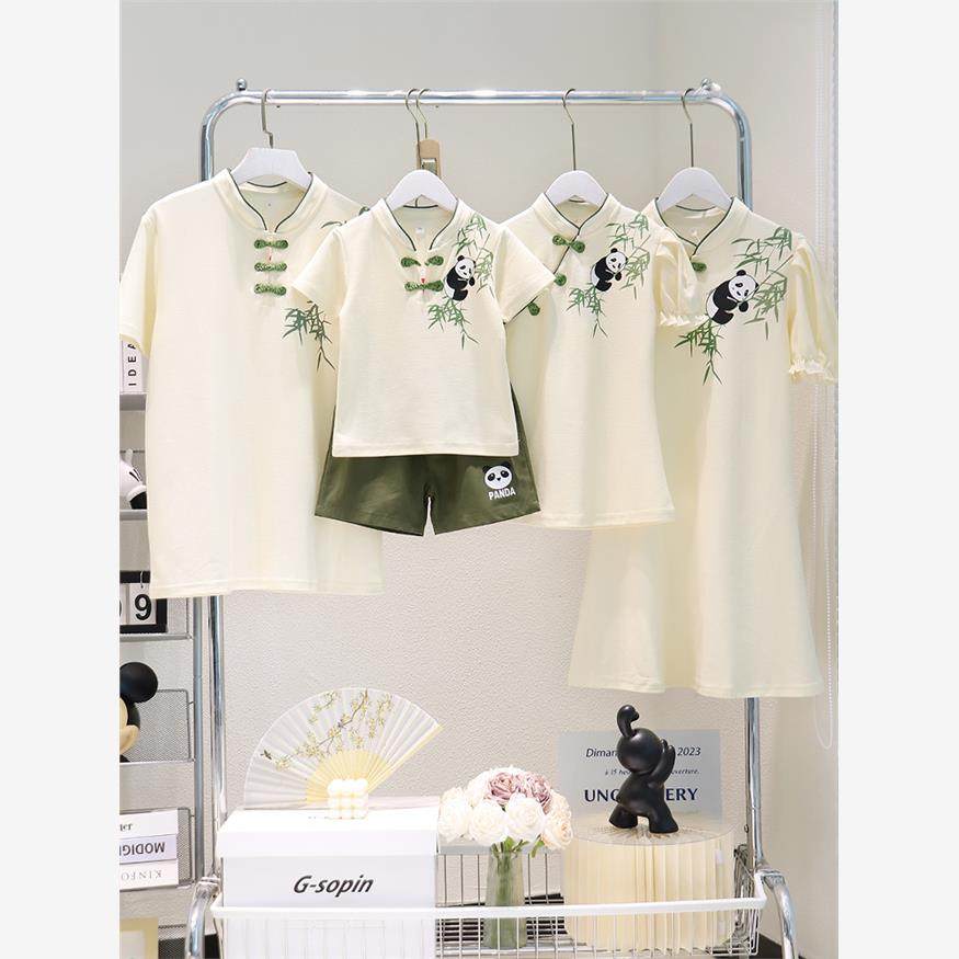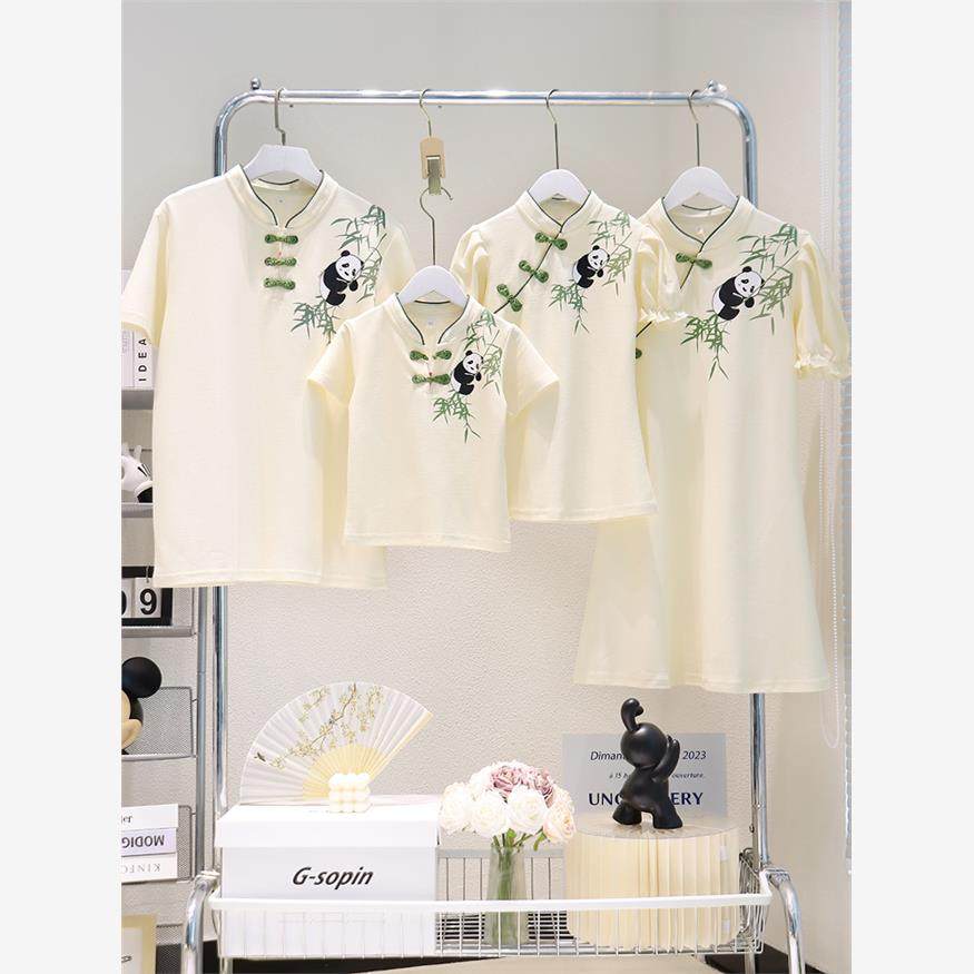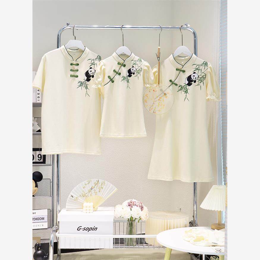 新中式高端亲子装母子母女连衣裙夏季一家三口四口婴儿T恤中国风