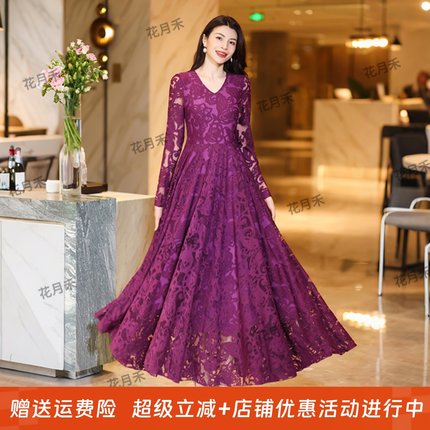 2025年新款春秋冬优雅气质大摆连衣裙旅游度假长裙雪纺裙沙滩裙子