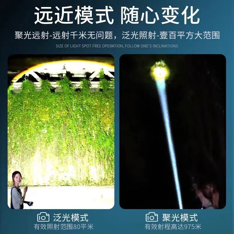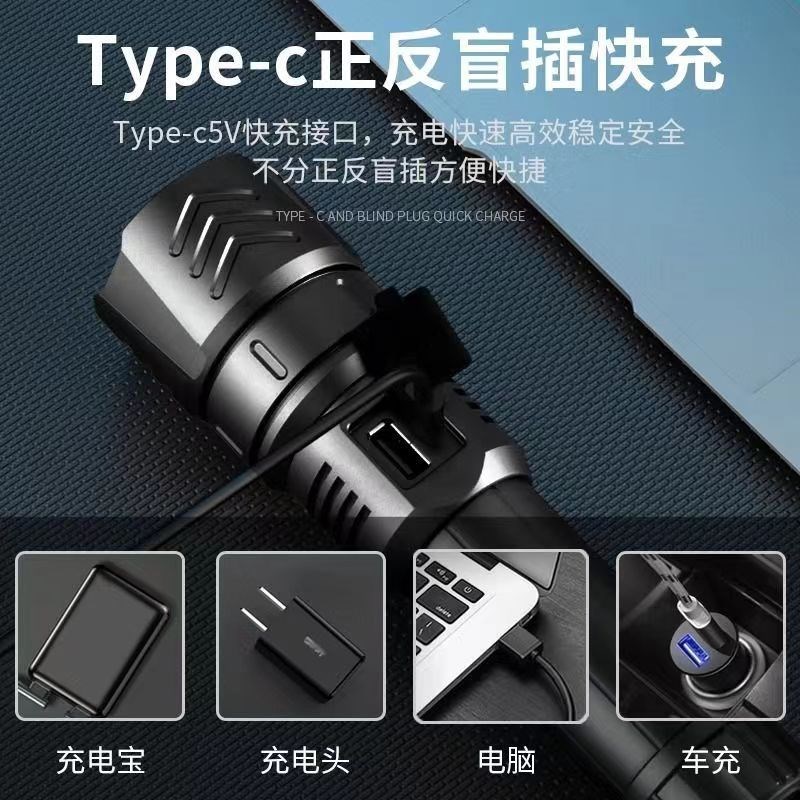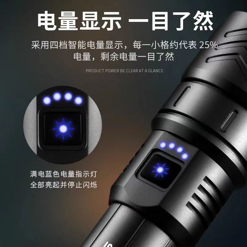 LED强光充h电超亮户外远射激光变焦耐用家用流明手电筒现货
