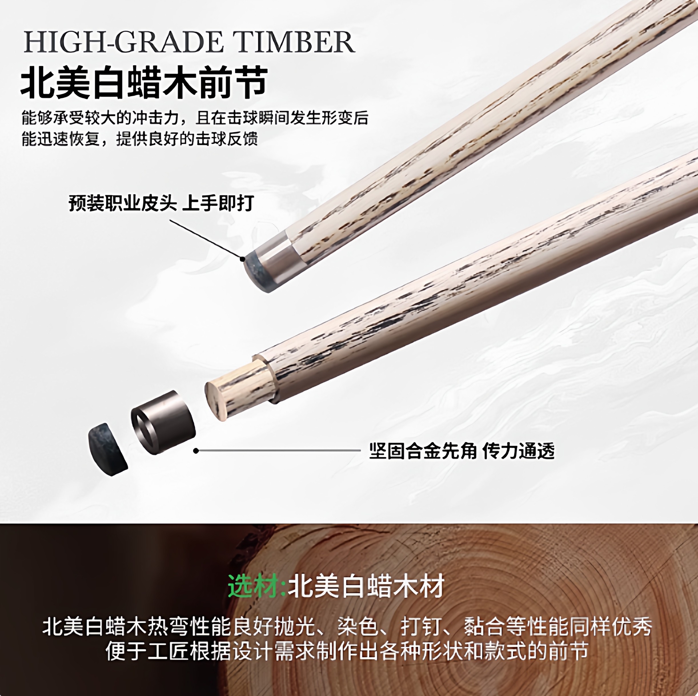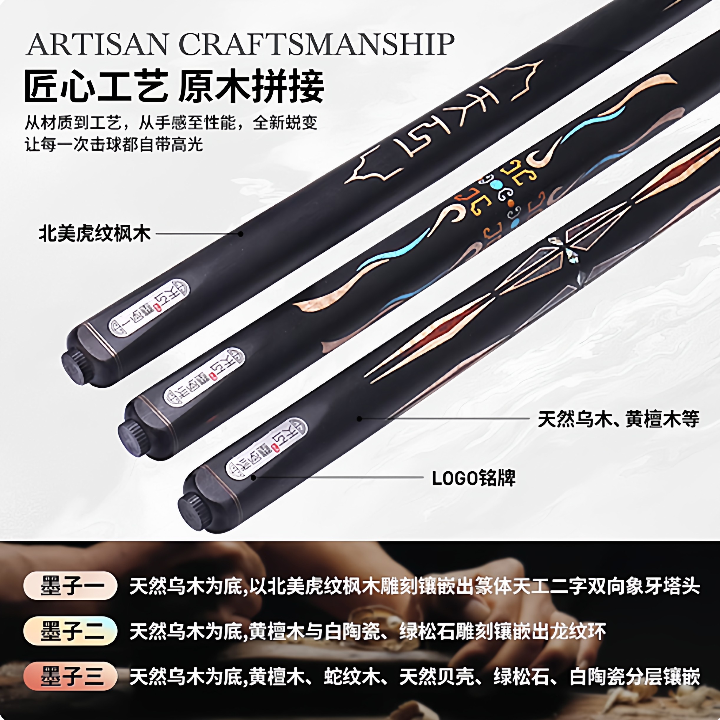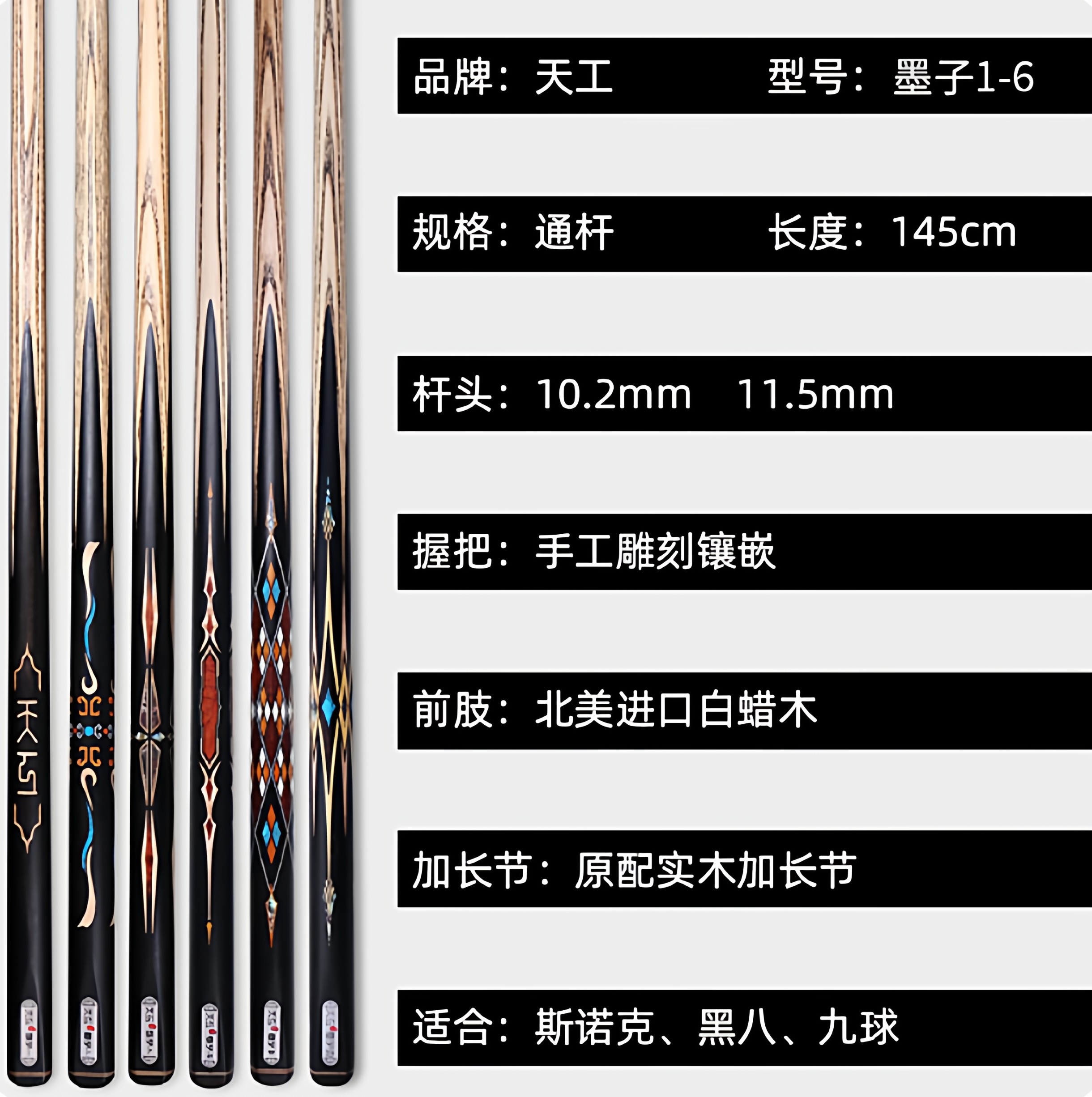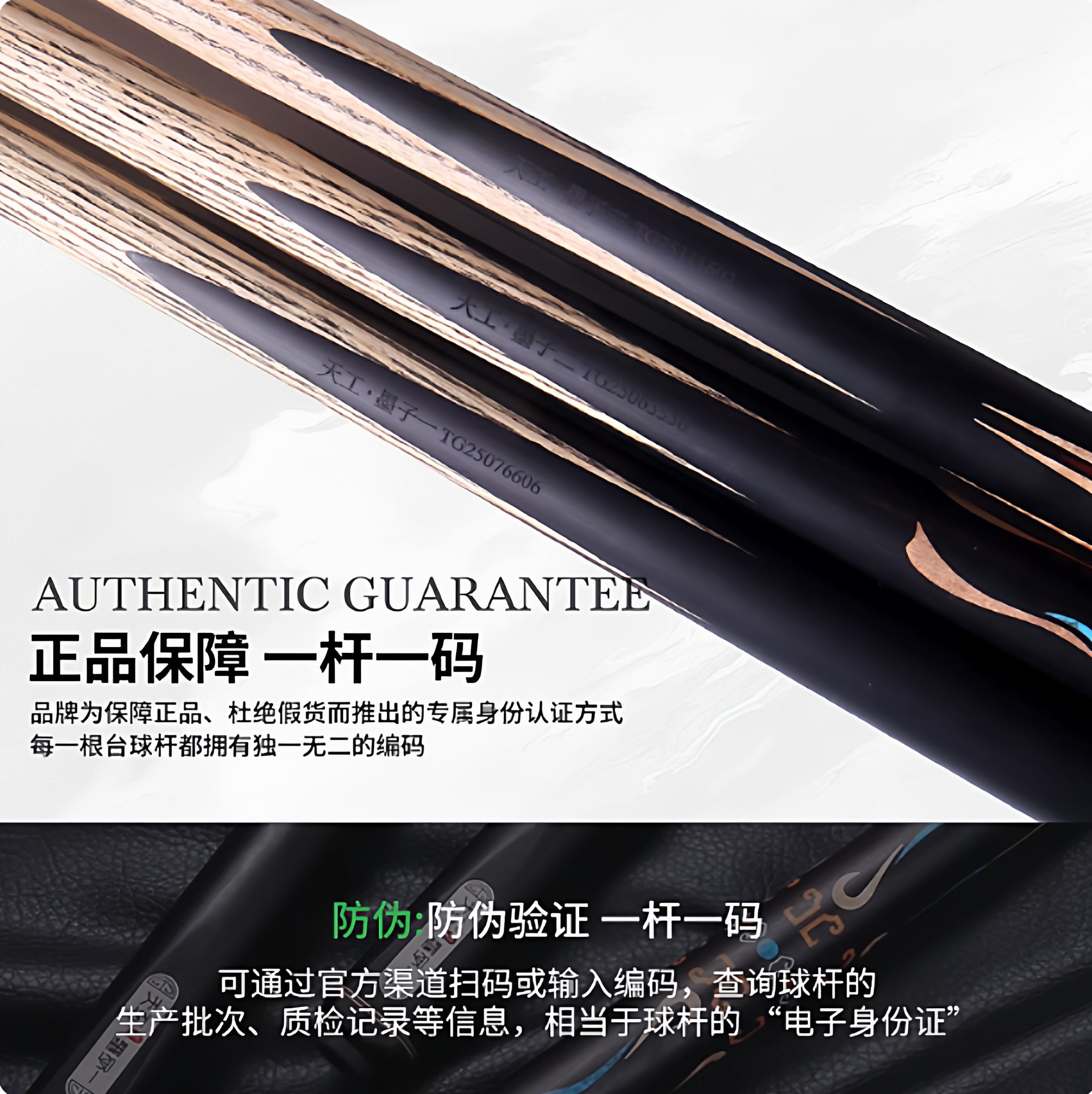 官方正品天工墨子二-6台球杆辉煌甲手工小头黑八桌球杆白蜡木镶嵌
