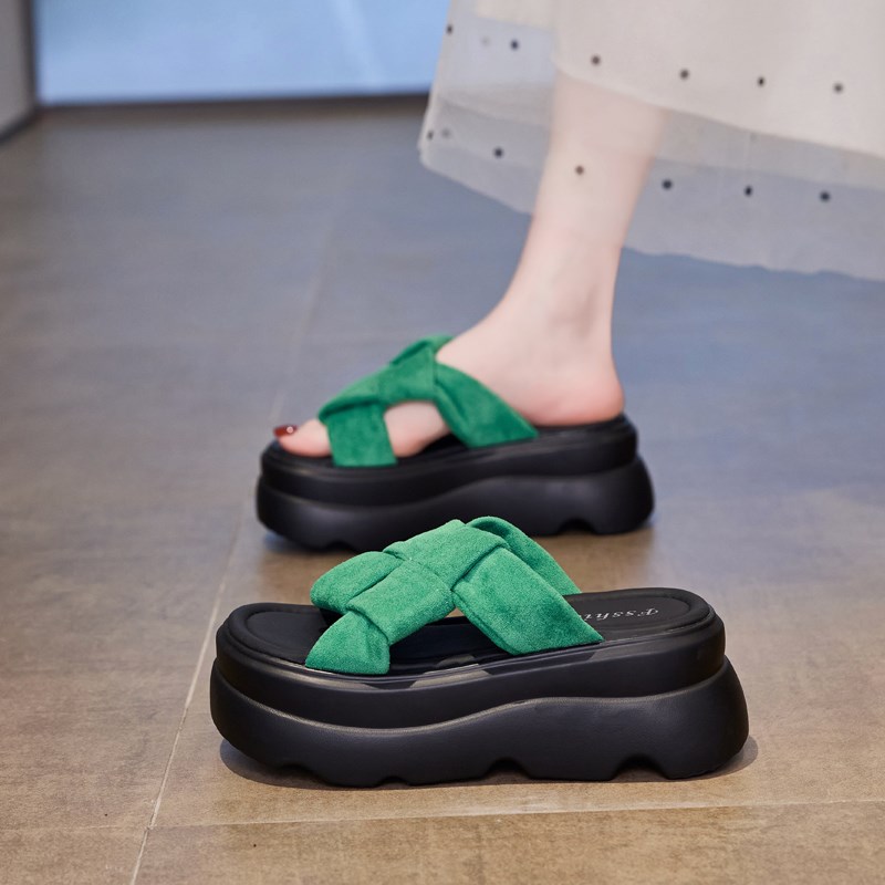 松糕厚底凉拖鞋女夏季外穿2025新款气质编织高跟海边度假沙滩凉鞋