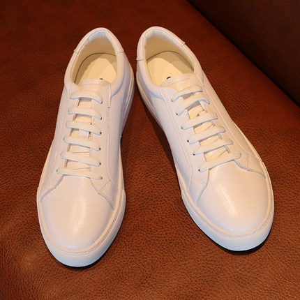 秋季男鞋透气真皮小白鞋男韩版平底白鞋潮流百搭西装休闲白色板鞋