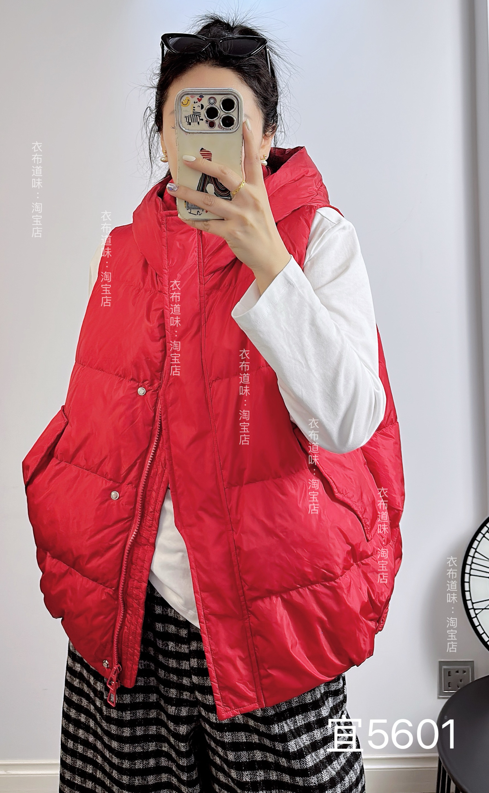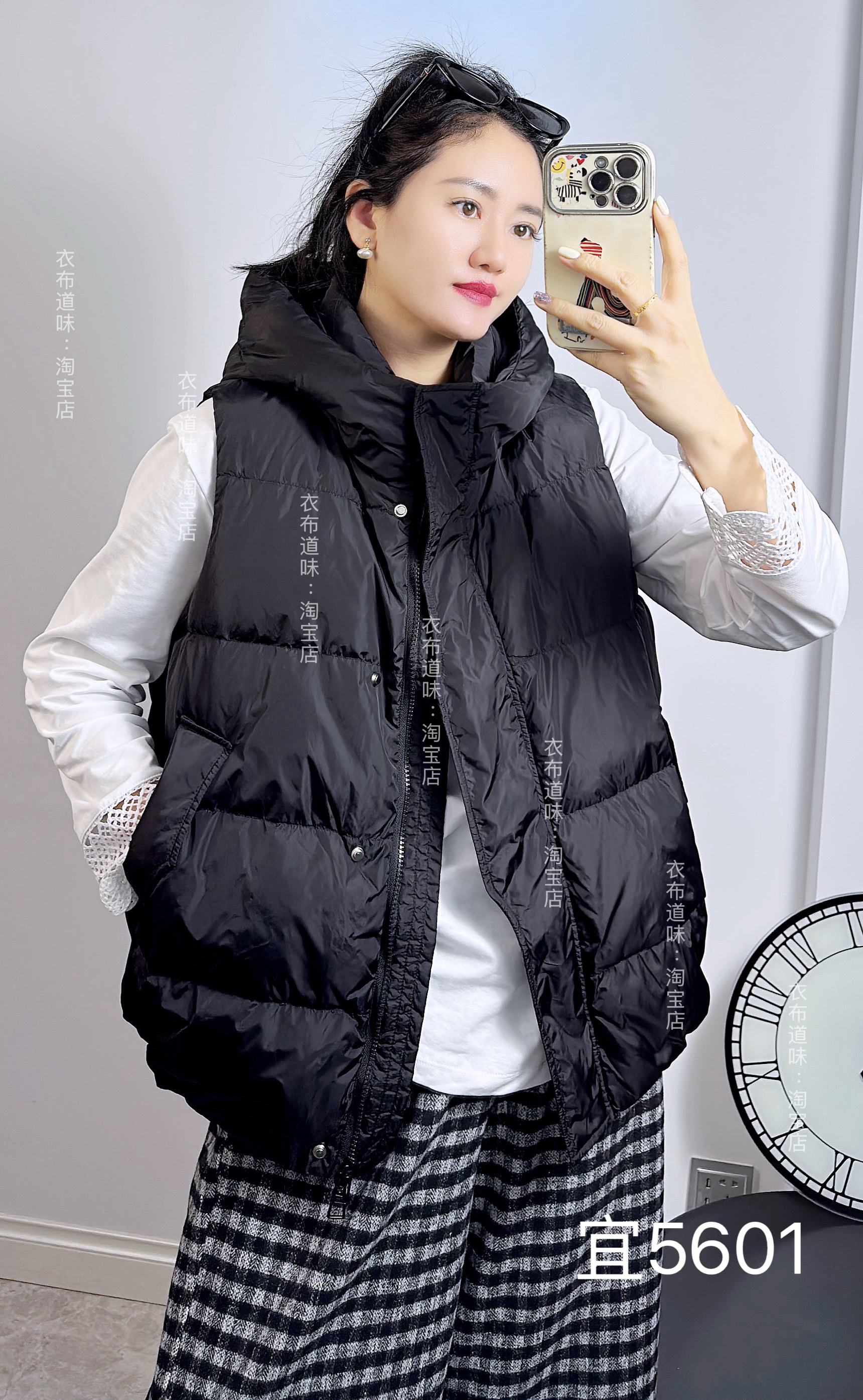 宜语析5601冬加大码羽绒服马夹女 宽松显瘦连帽羽绒马甲外套