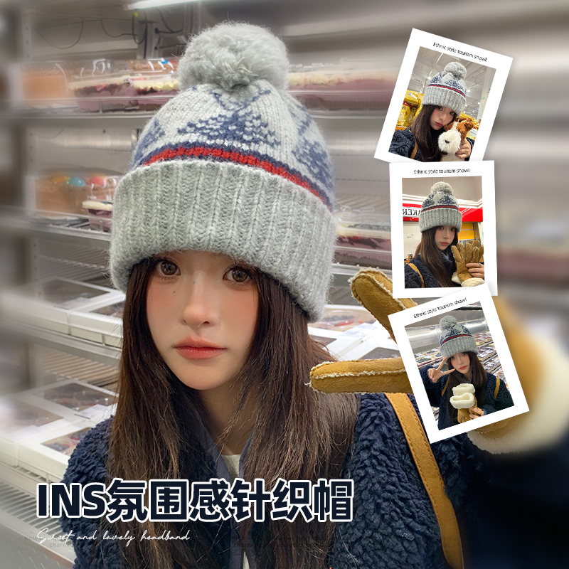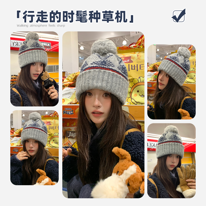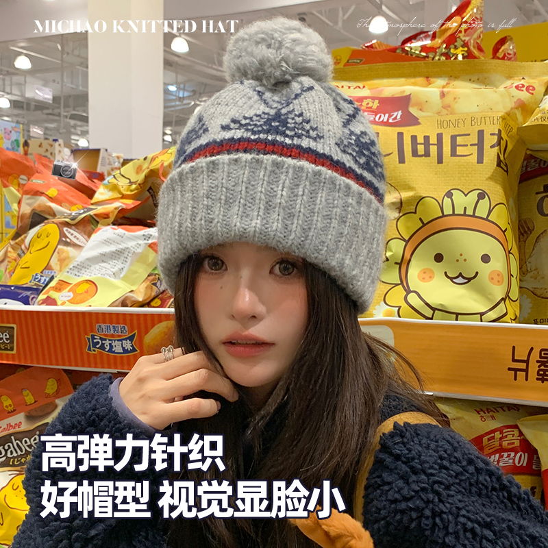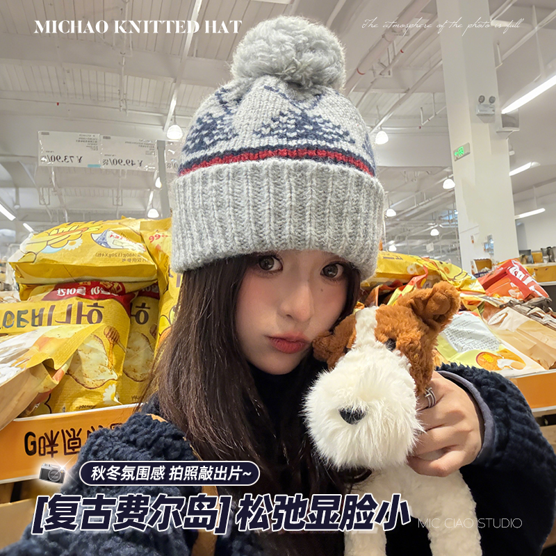 费尔岛针织帽子女2025新款防寒保暖帽显脸小毛线帽秋冬季护耳冷帽
