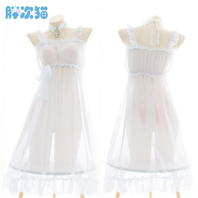 纯欲风白色款~半透女仆套装雪纺睡衣性感睡裙连衣裙仙女家居服