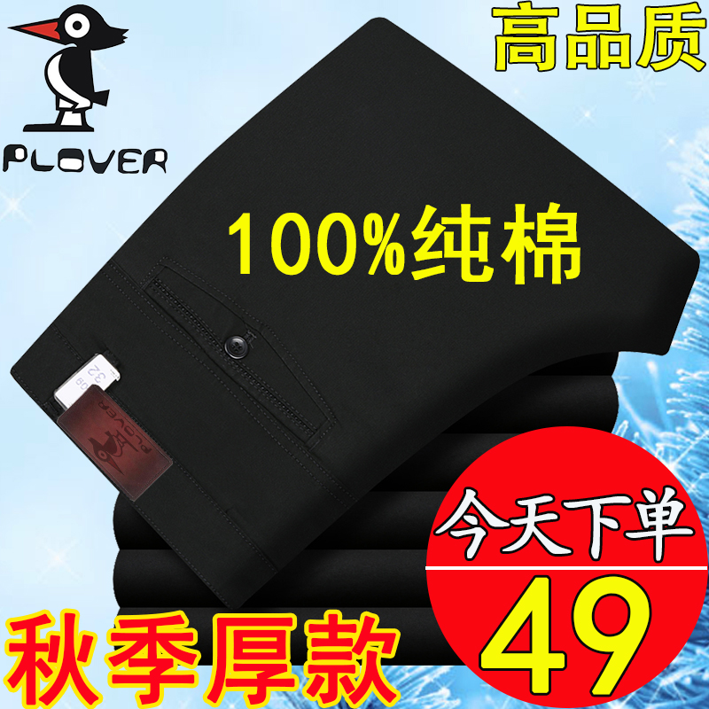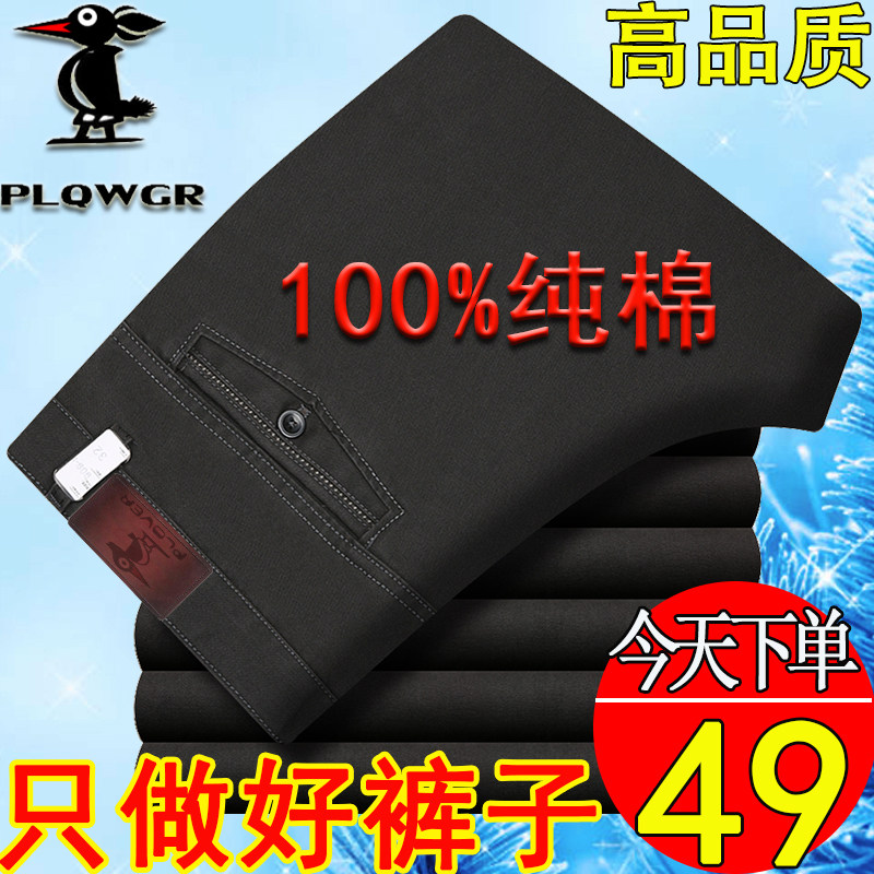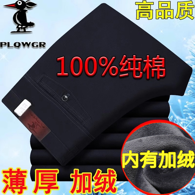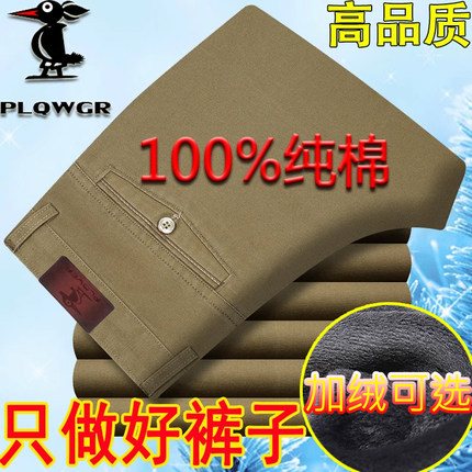 中年男裤春秋季纯棉直筒休闲裤中老年裤子男士秋冬款加绒全棉西裤