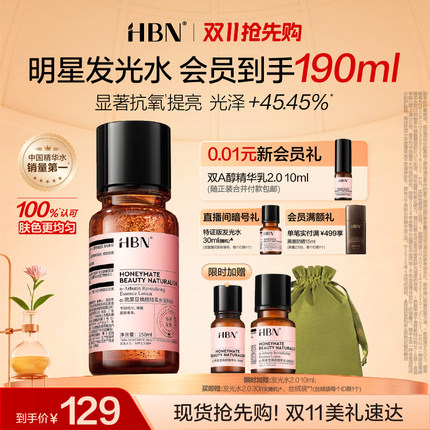 【双11抢先购】HBN发光水α-熊果苷精粹水2.0提亮爽肤水湿敷水