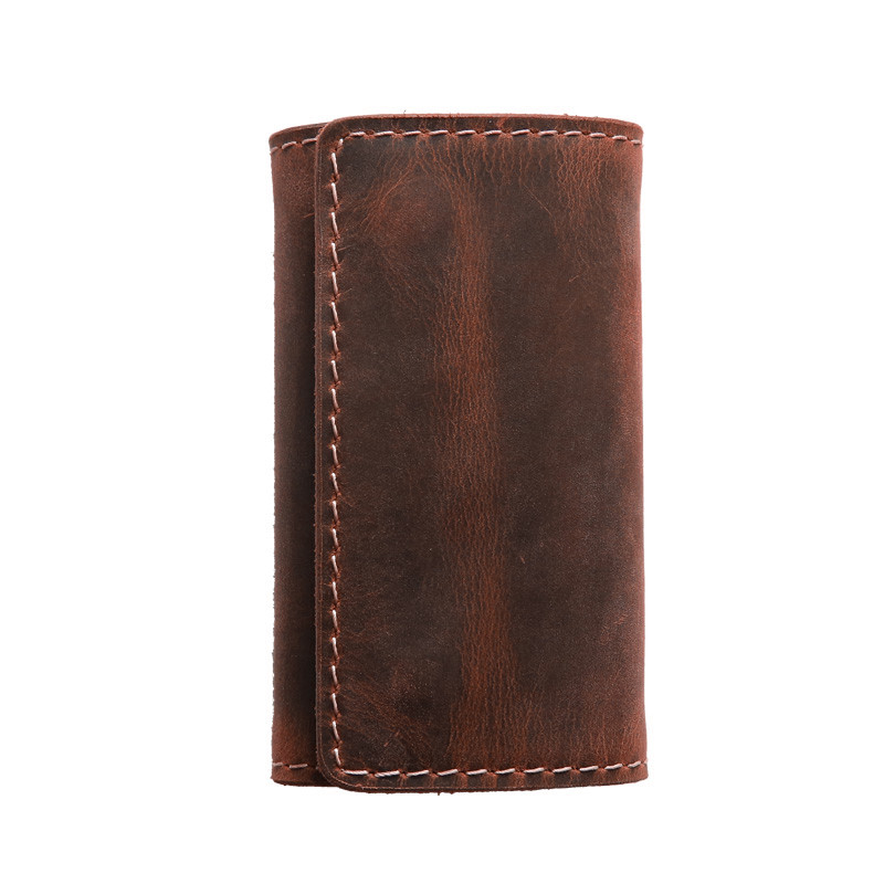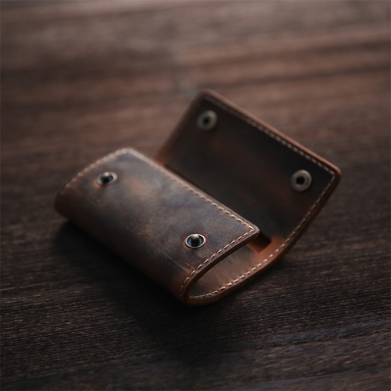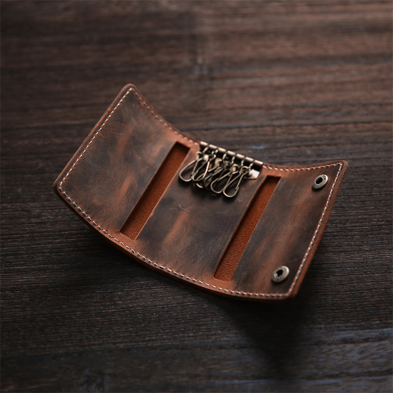 复古手工钥匙扣疯马头层牛皮搭扣钥匙包男士真皮卡包多功能锁匙包