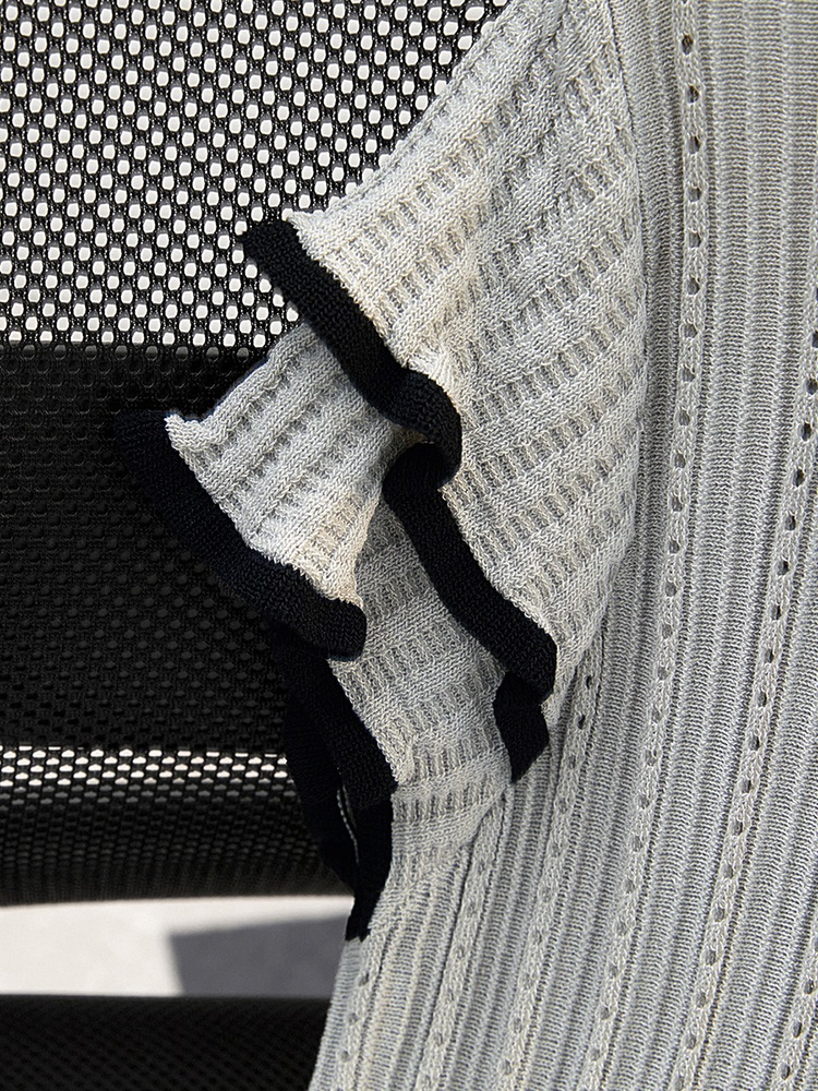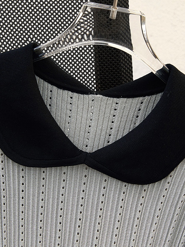 大码女装飞飞袖冰丝短袖T恤女夏季镂空撞色娃娃领洋气针织上衣潮