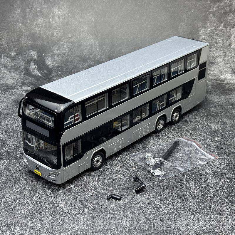 高档北京公源车模 1/4 北汽新能福田欧辉客车双层巴士3祥云蓝型涂