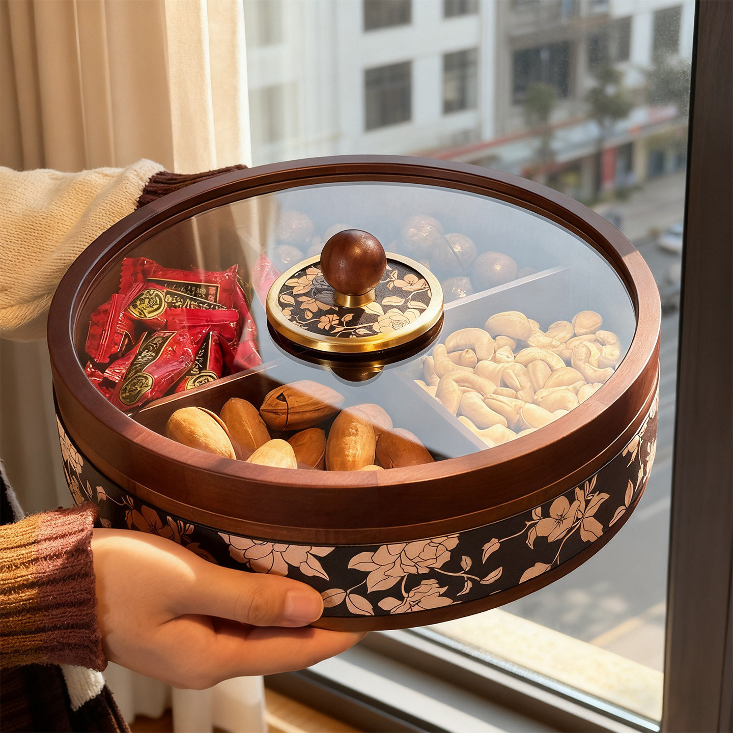 干果盘客厅茶几家用四宫格中古风水果盘精致高颜值坚果零食糖果盒