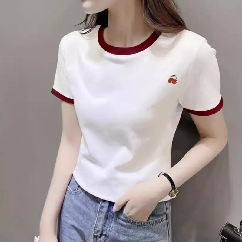 欧货撞色短袖t恤女纯棉