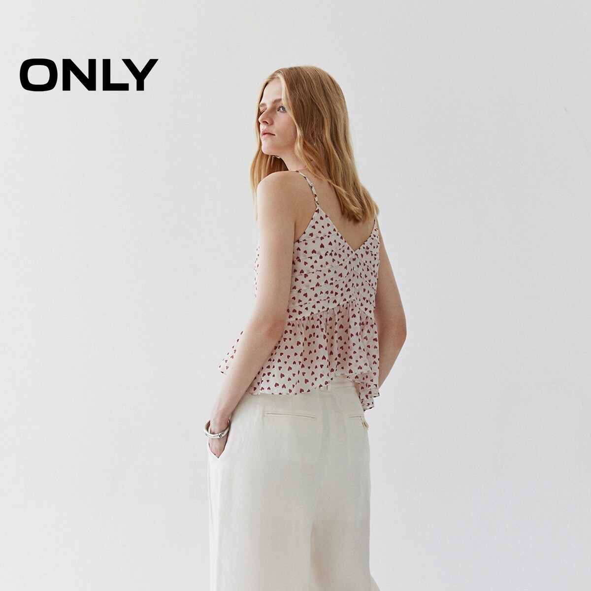 【ONLY奥莱】春款甜美百搭浪漫可爱桃心满印修身短款吊带雪纺衫女