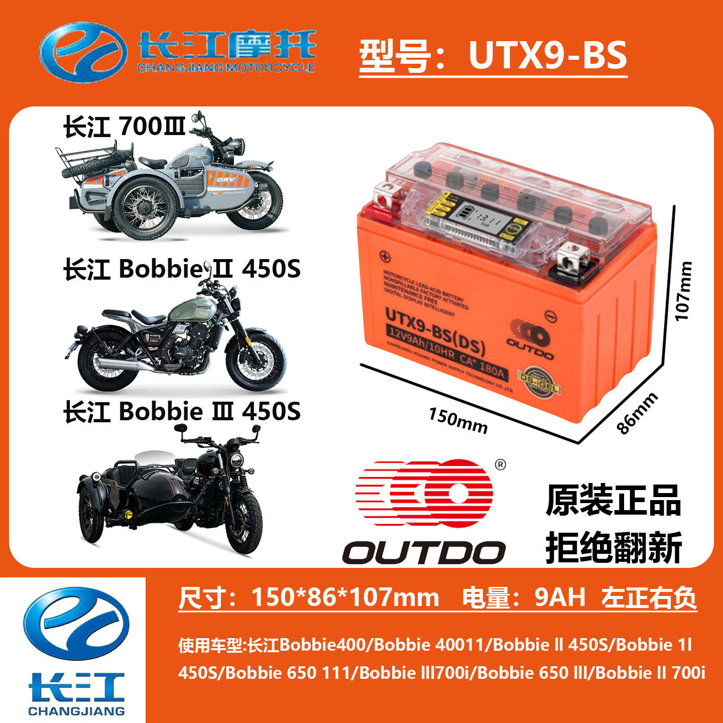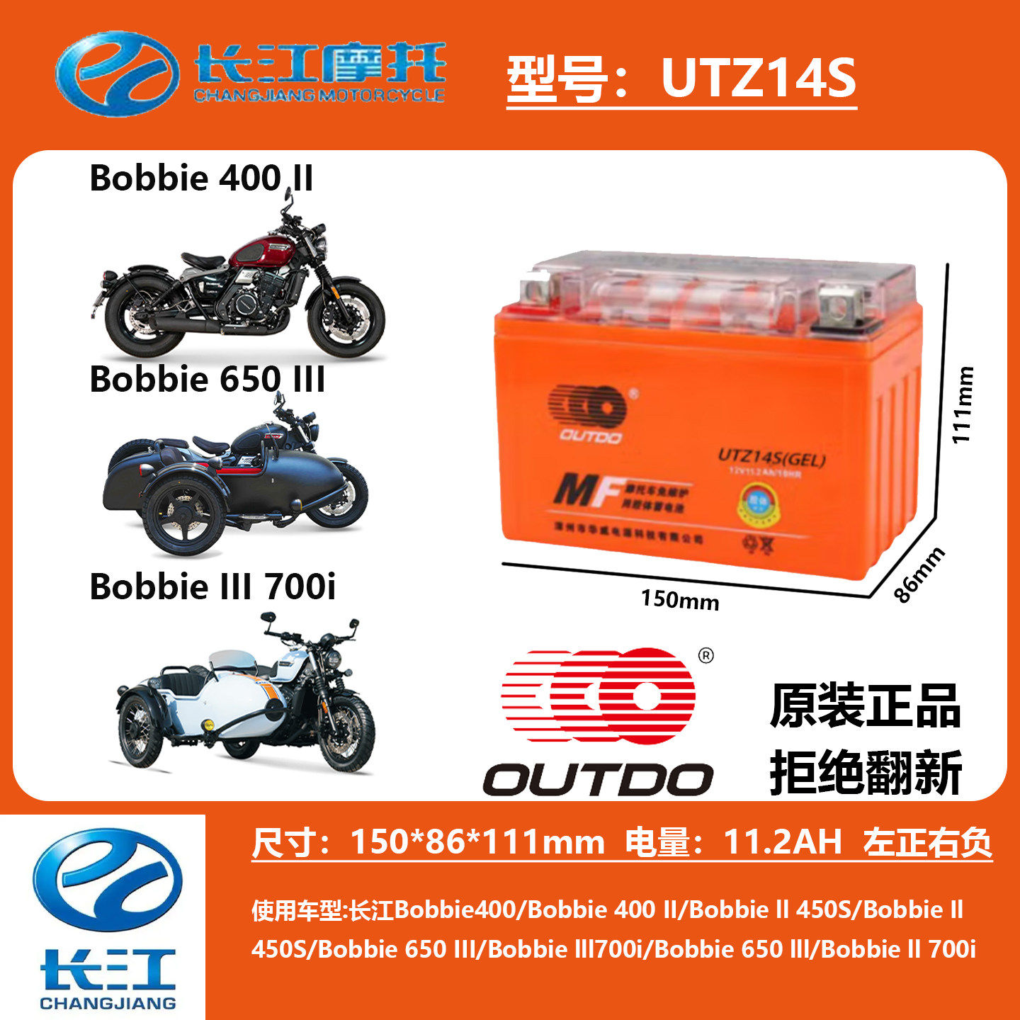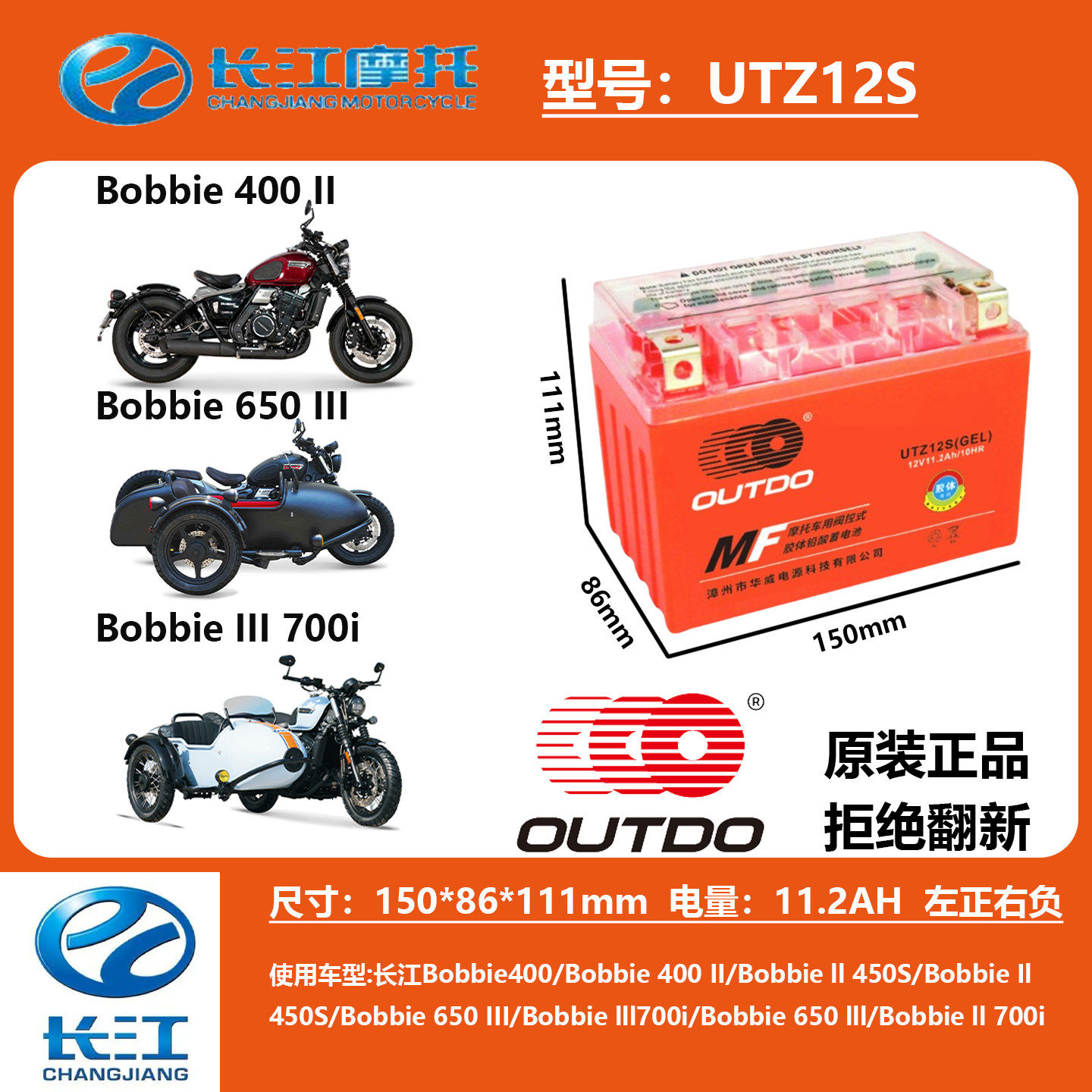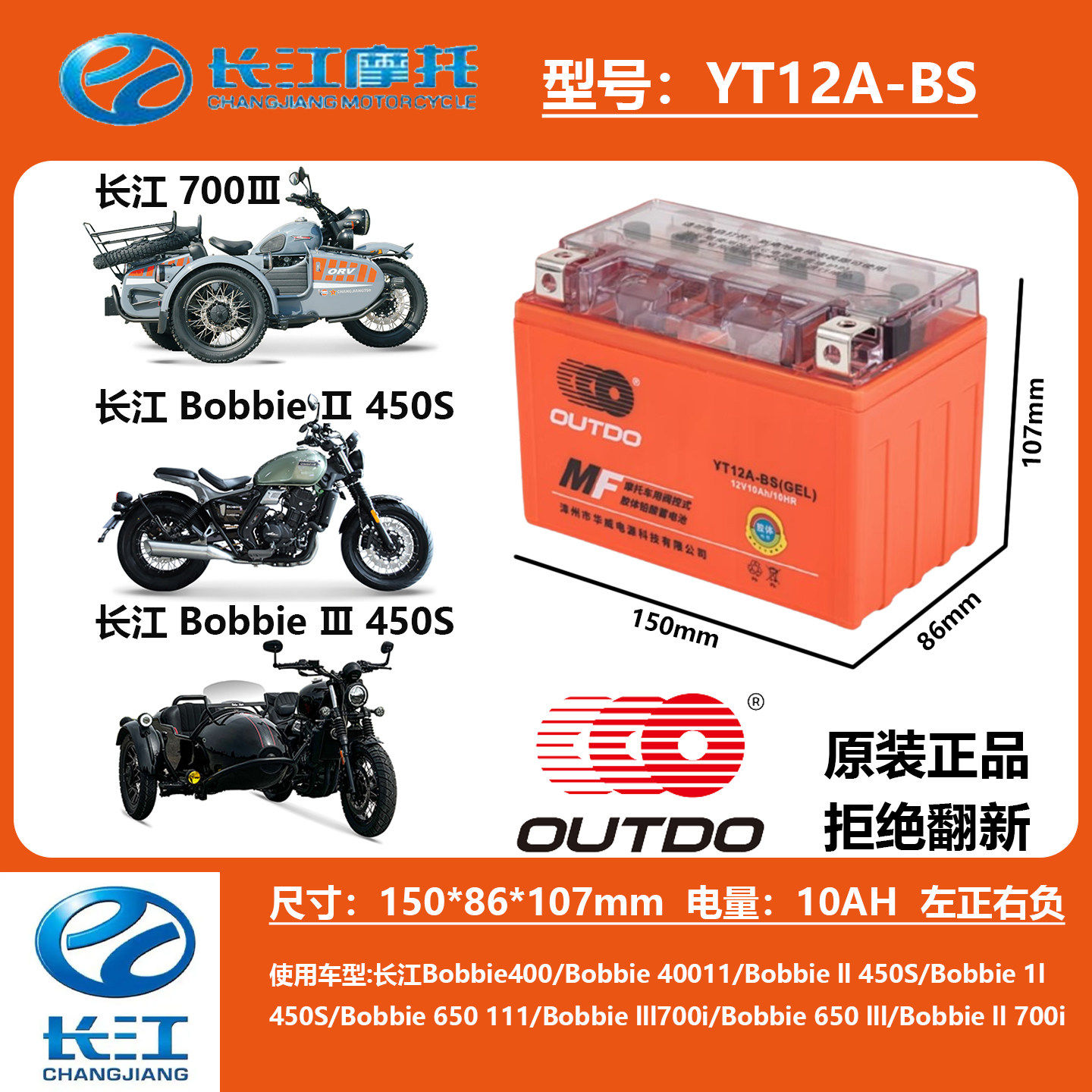 长江摩托车蓄电池Bobbie400 450S 700 650b边三轮免维护胶体电瓶