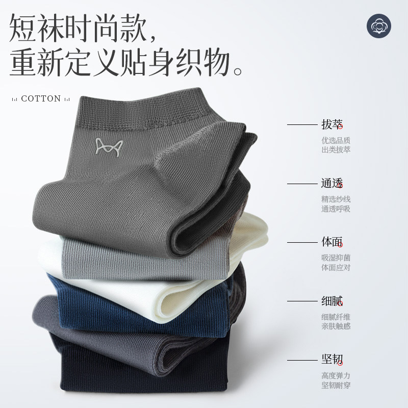 猫人袜子男款纯棉防臭短袜吸汗防臭全棉春秋款男士不臭脚运动袜