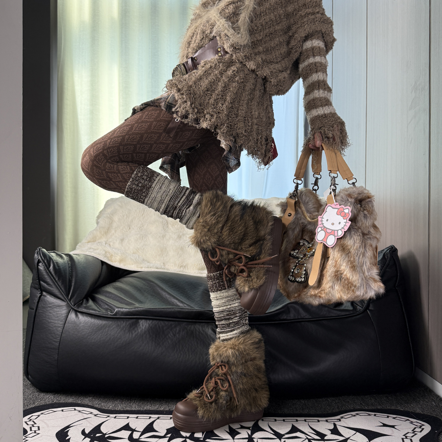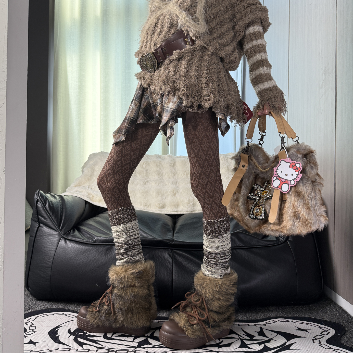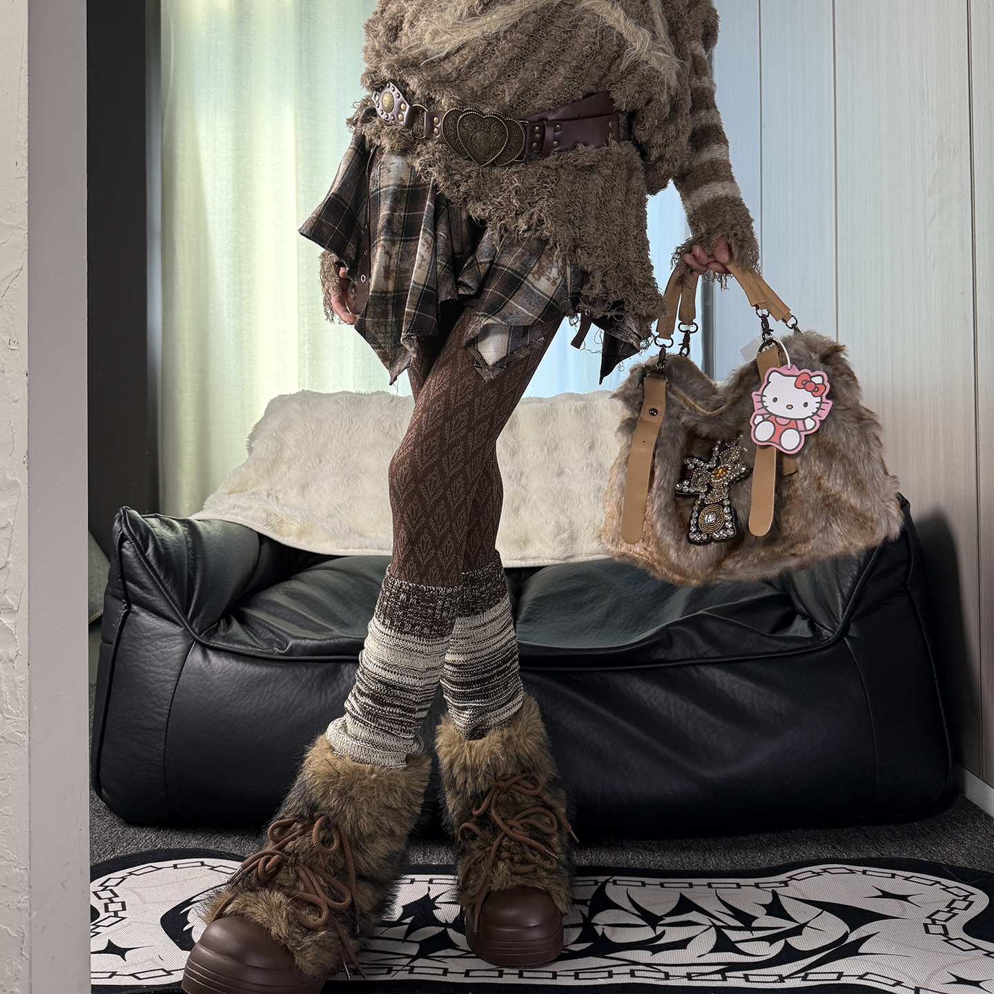 小众不出格·千禧风y2k辣妹咖色凤尾花连裤叠复古感亚文化腿套