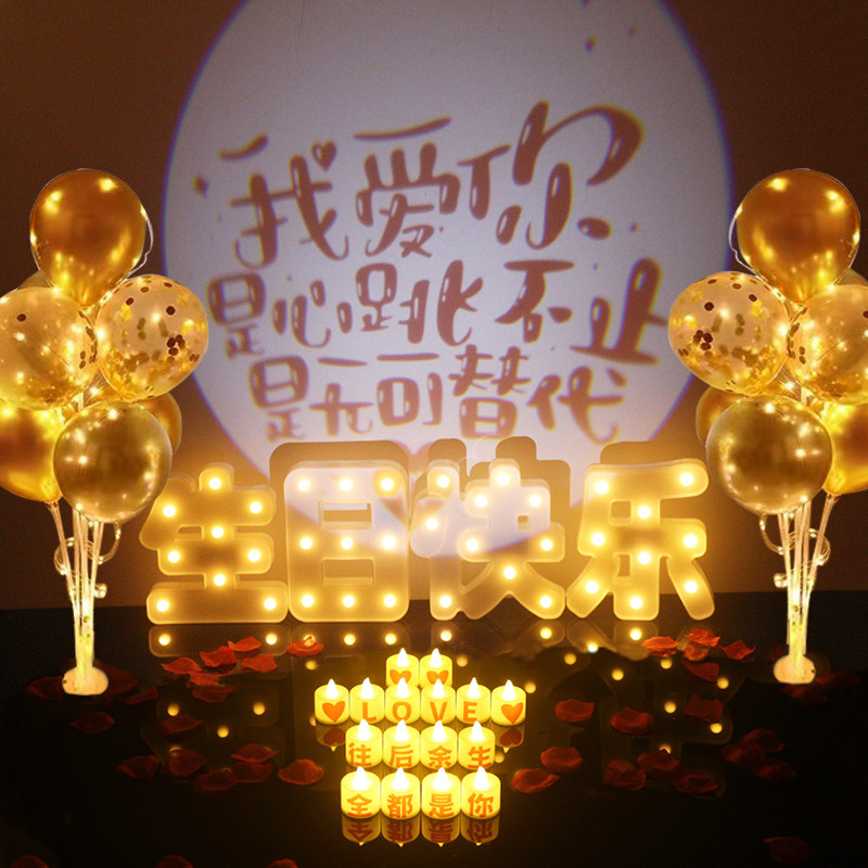 老公生日装饰场景布置浪漫投影灯