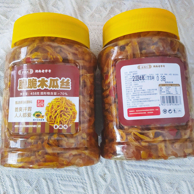 王饺儿 木瓜金丝湖南特产老字号酱菜下饭菜 458g瓶装开胃爽口包邮
