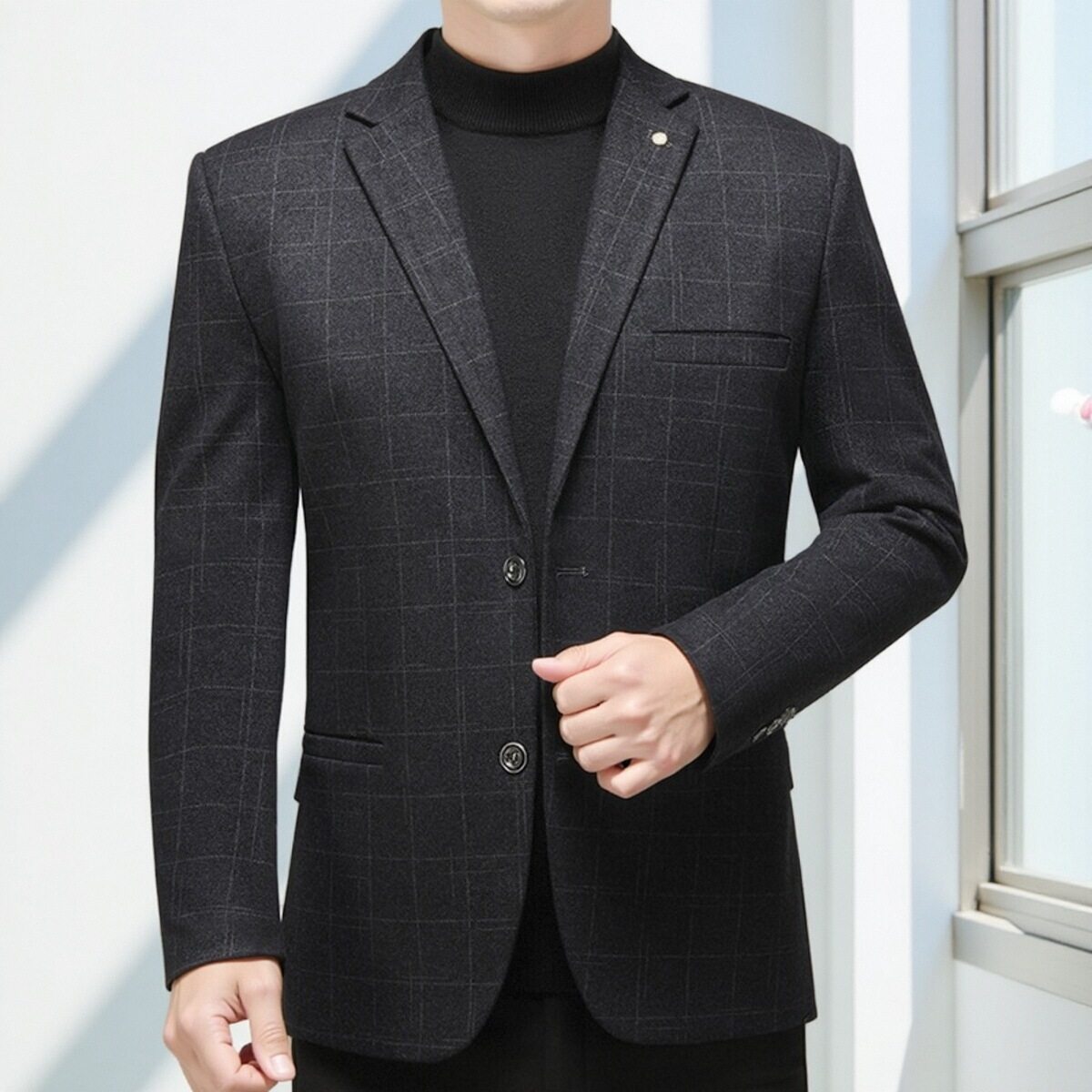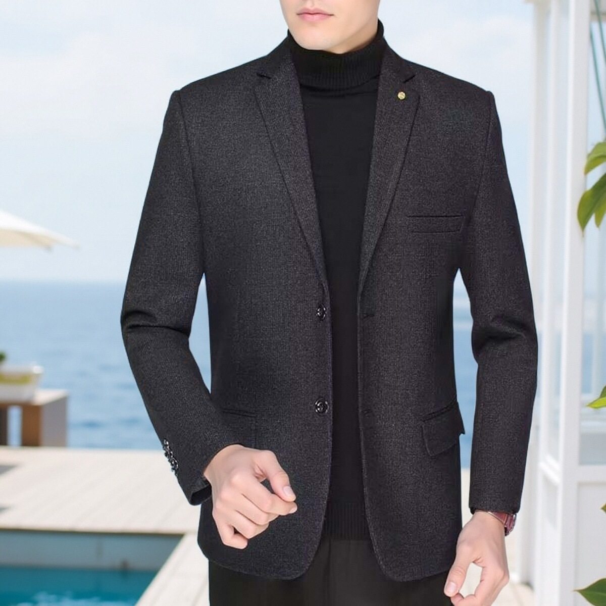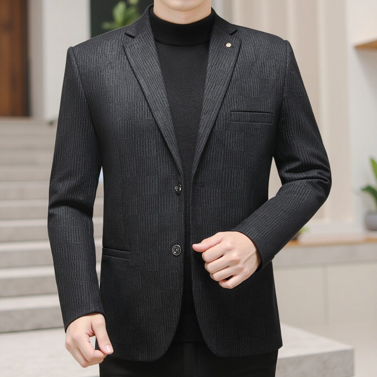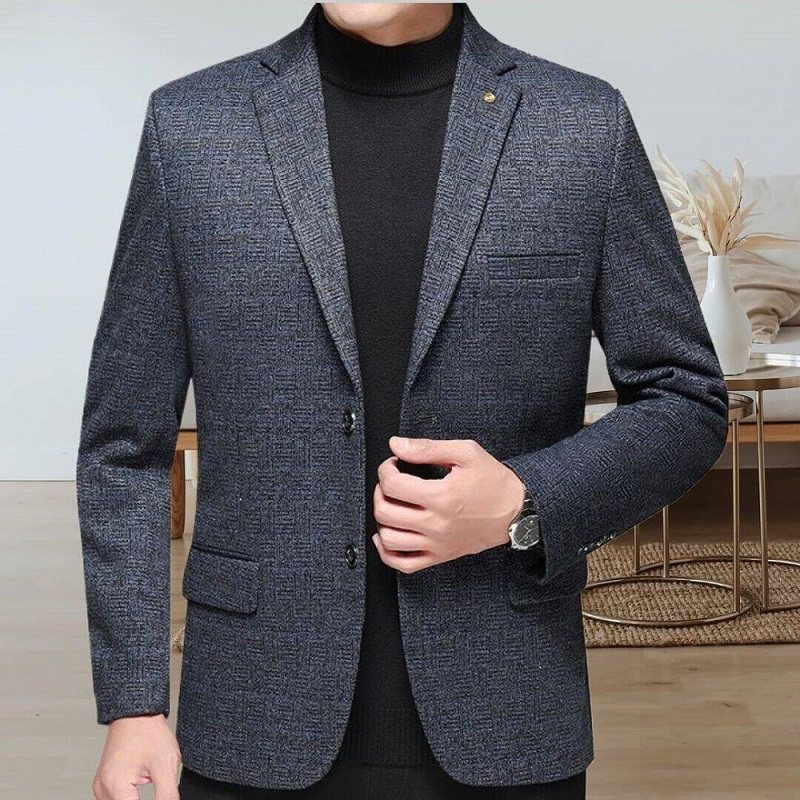 弹力西装外套男休闲秋冬季加厚保暖加肥中年新品爸爸新款胖子西服