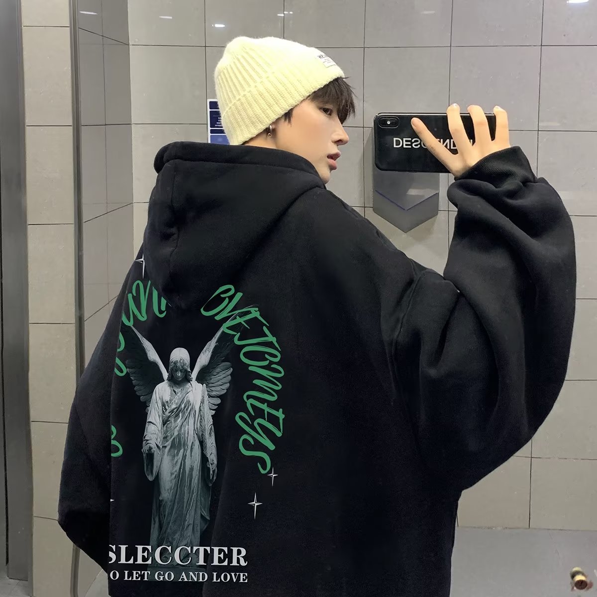 美式复古卫衣男生冬季加绒加厚外套秋冬ins潮牌重磅连帽卫衣外套v