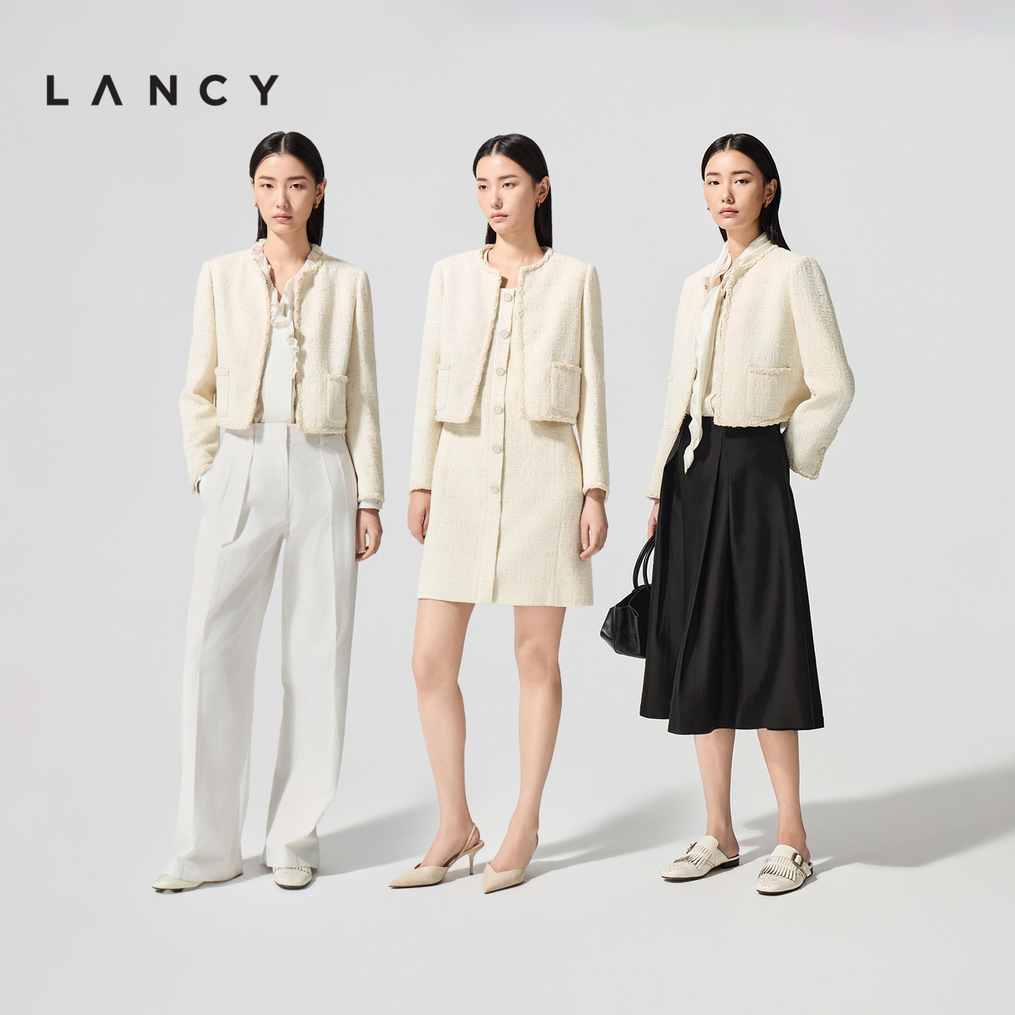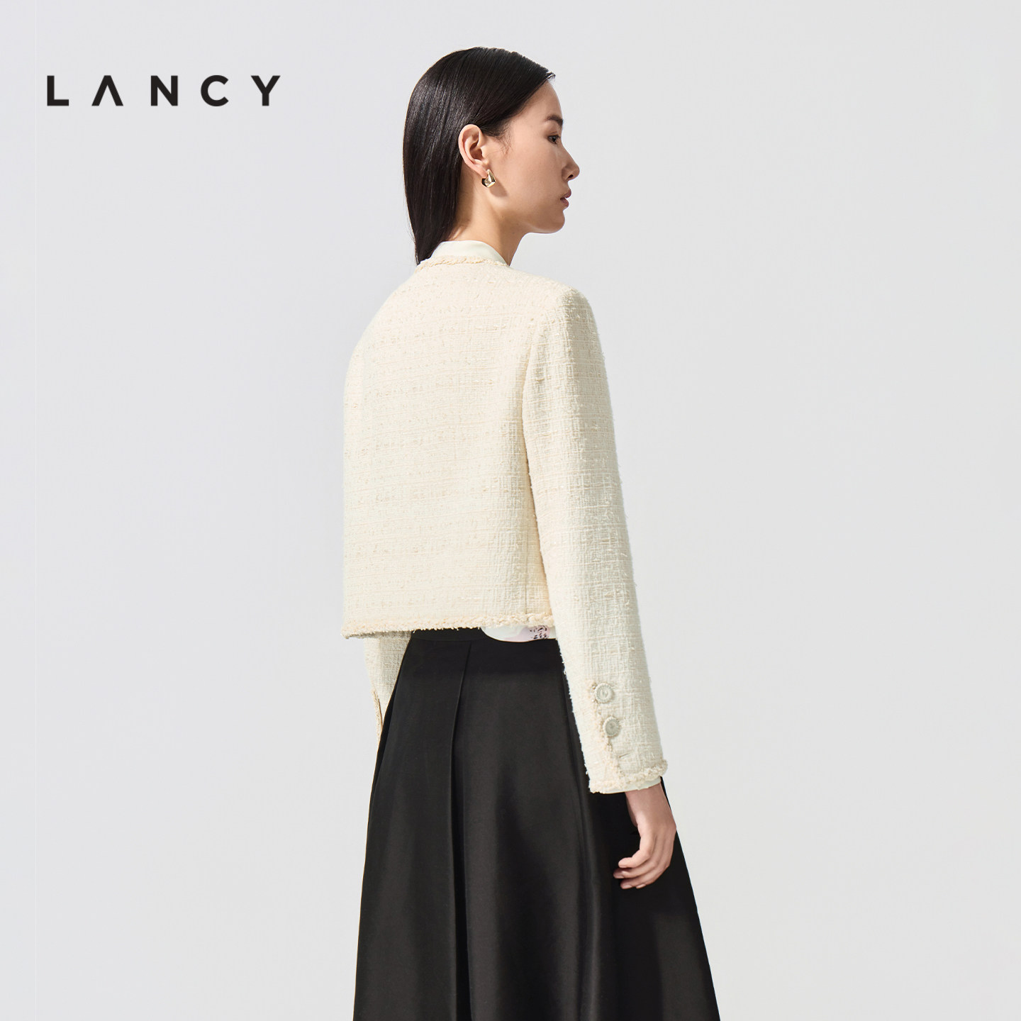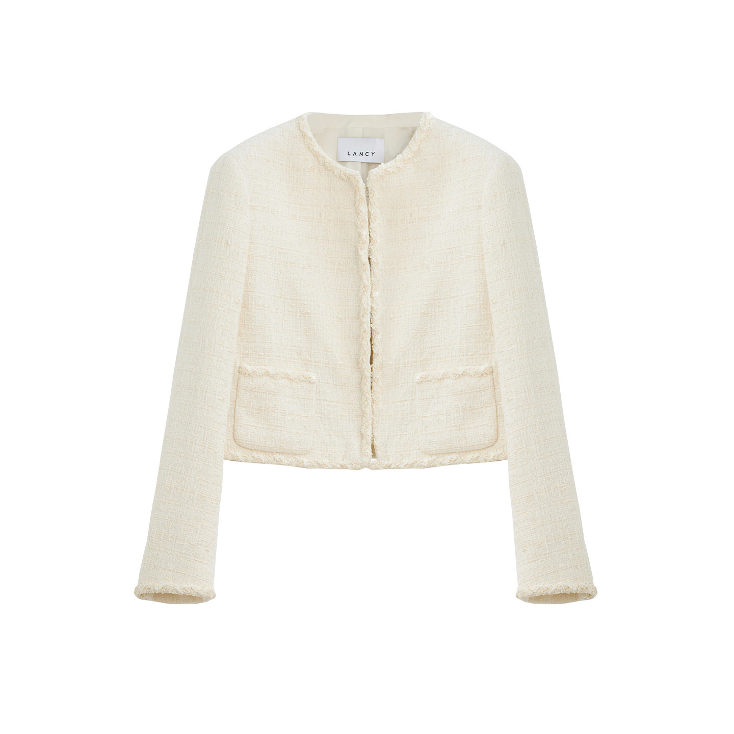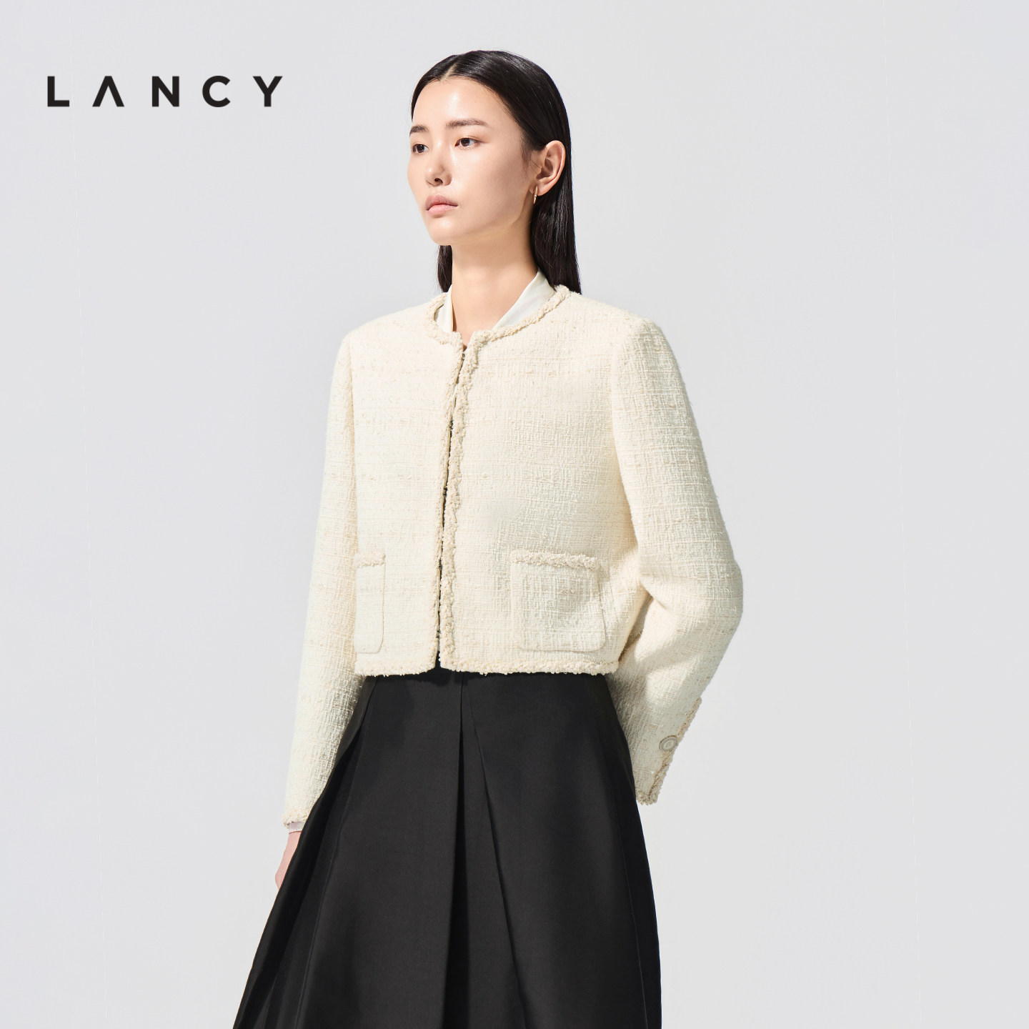LANCY/朗姿2026春新款法式小香风提花短外套高级感圆领毛边上衣女