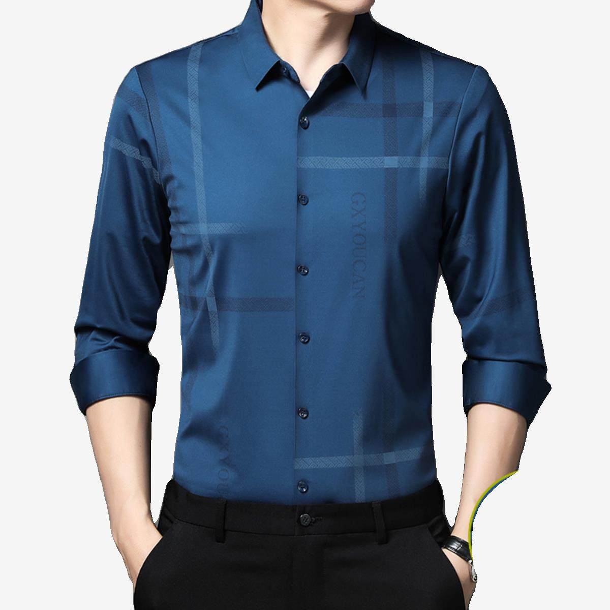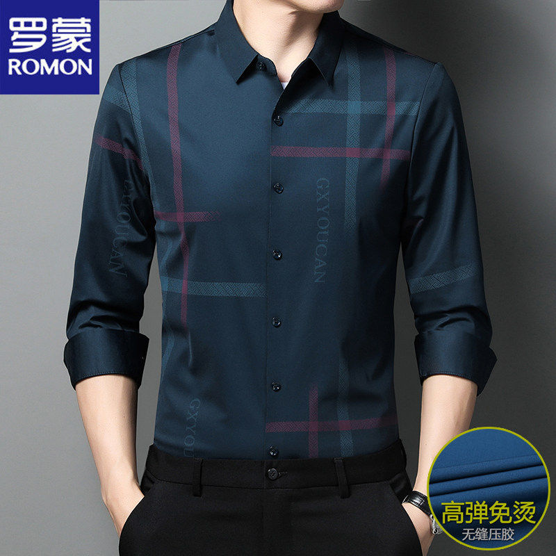 罗蒙新款春秋季弹力长袖衬衫中年男士商务休闲 免熨烫高端男装衬
