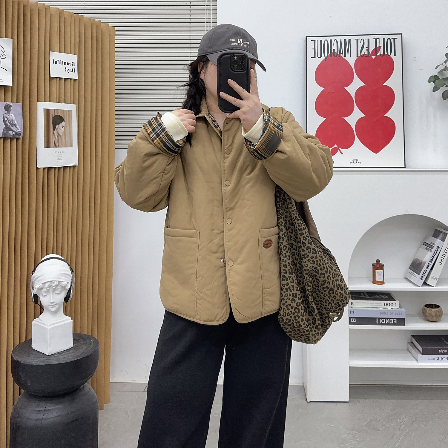 宛宛大码女2024秋冬新款假两件翻领菱格羽绒外套胖mm洋气棉衣棉服