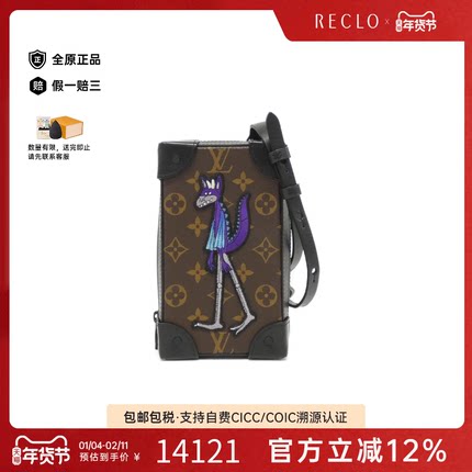 中古LV路易威登通用A级95新Soft Trunk Phone Box老花单肩包复古