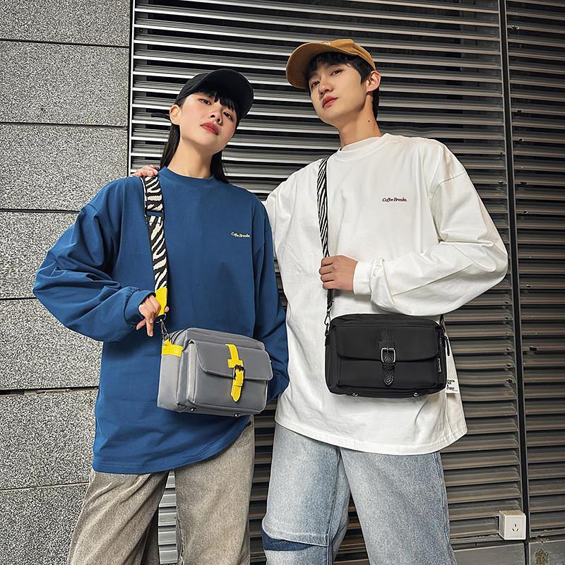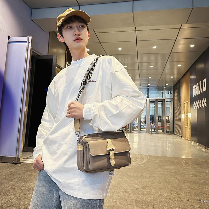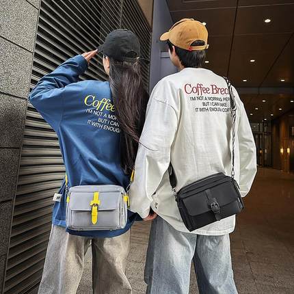 潮牌小包包女斜挎包时尚新款小方包情侣百搭宽肩带单肩牛津布包男