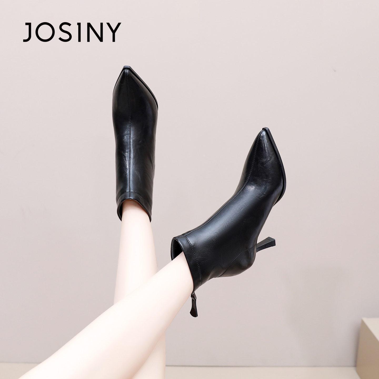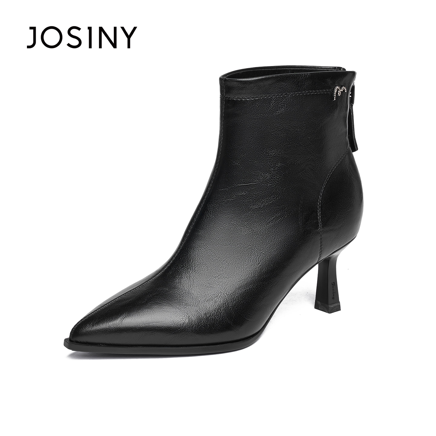 卓诗尼2025秋冬新款高跟短筒靴时尚舒适尖头时装靴潮流后拉链女靴