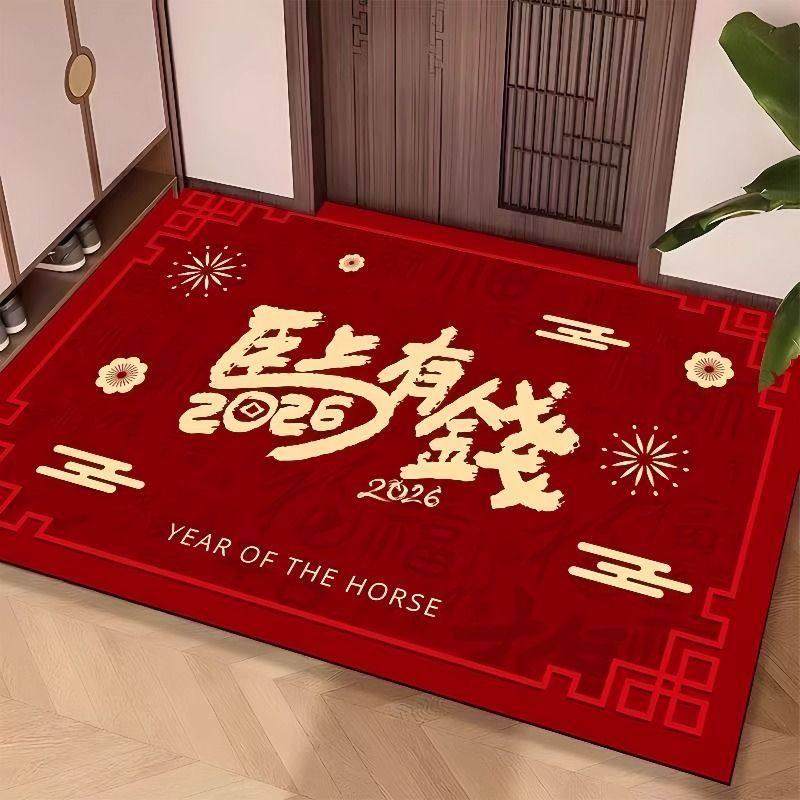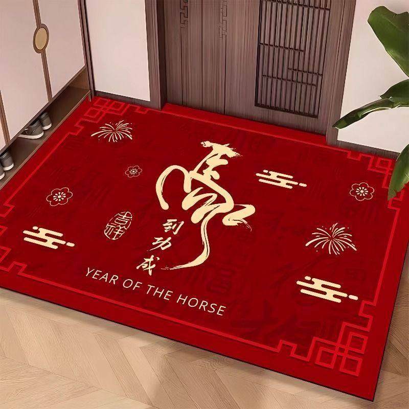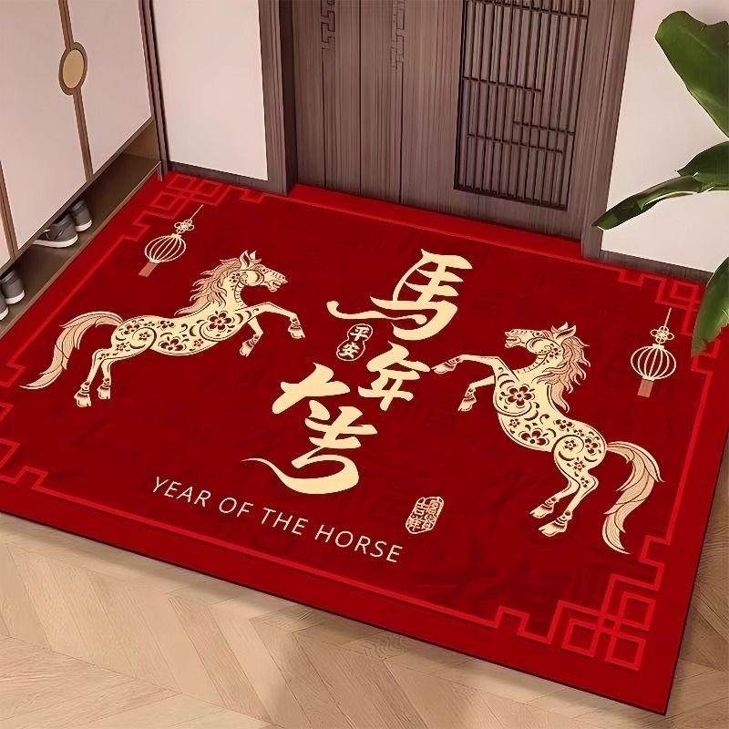 2026年新款马年水晶绒地垫入户进门口地毯垫玄关室内卧室红门防滑