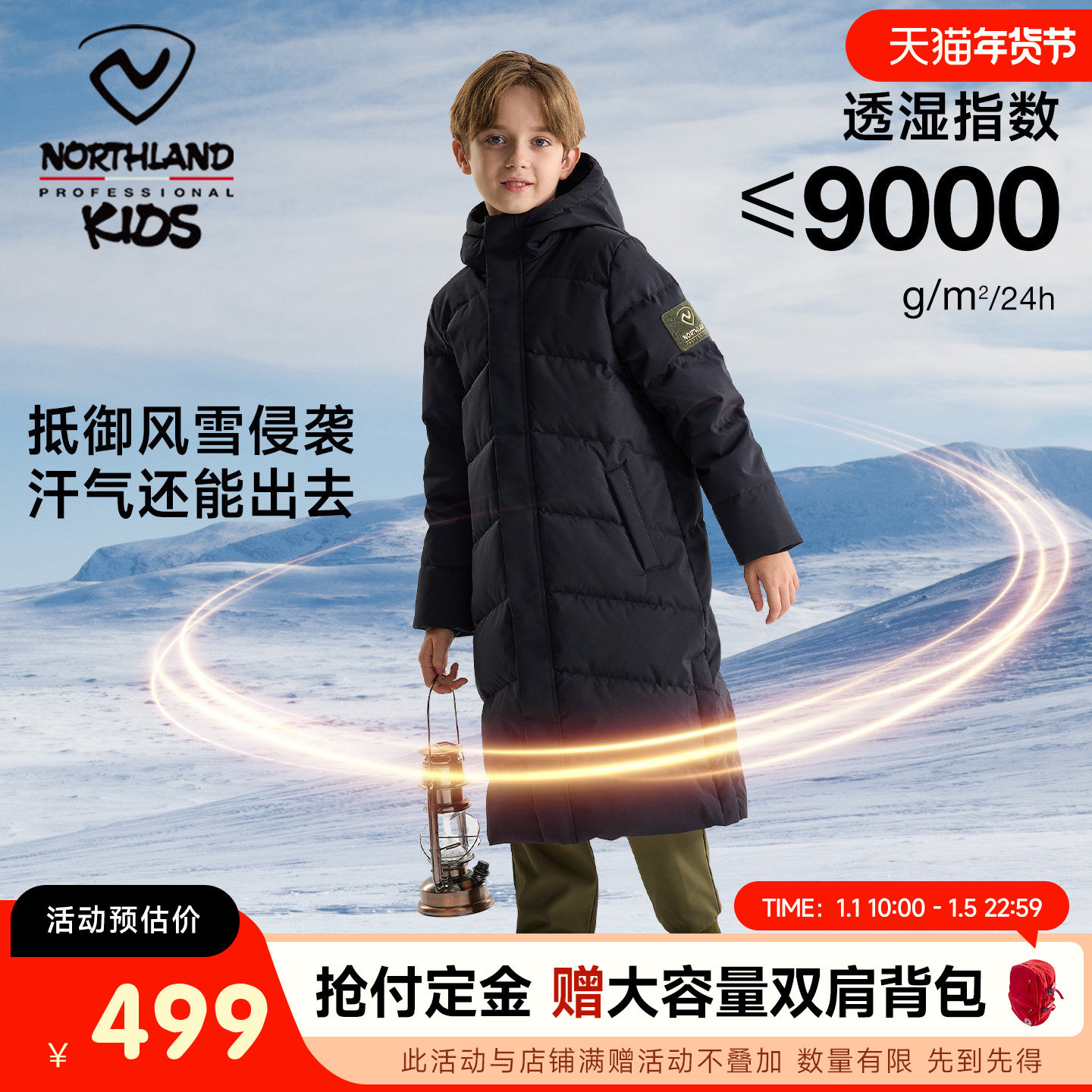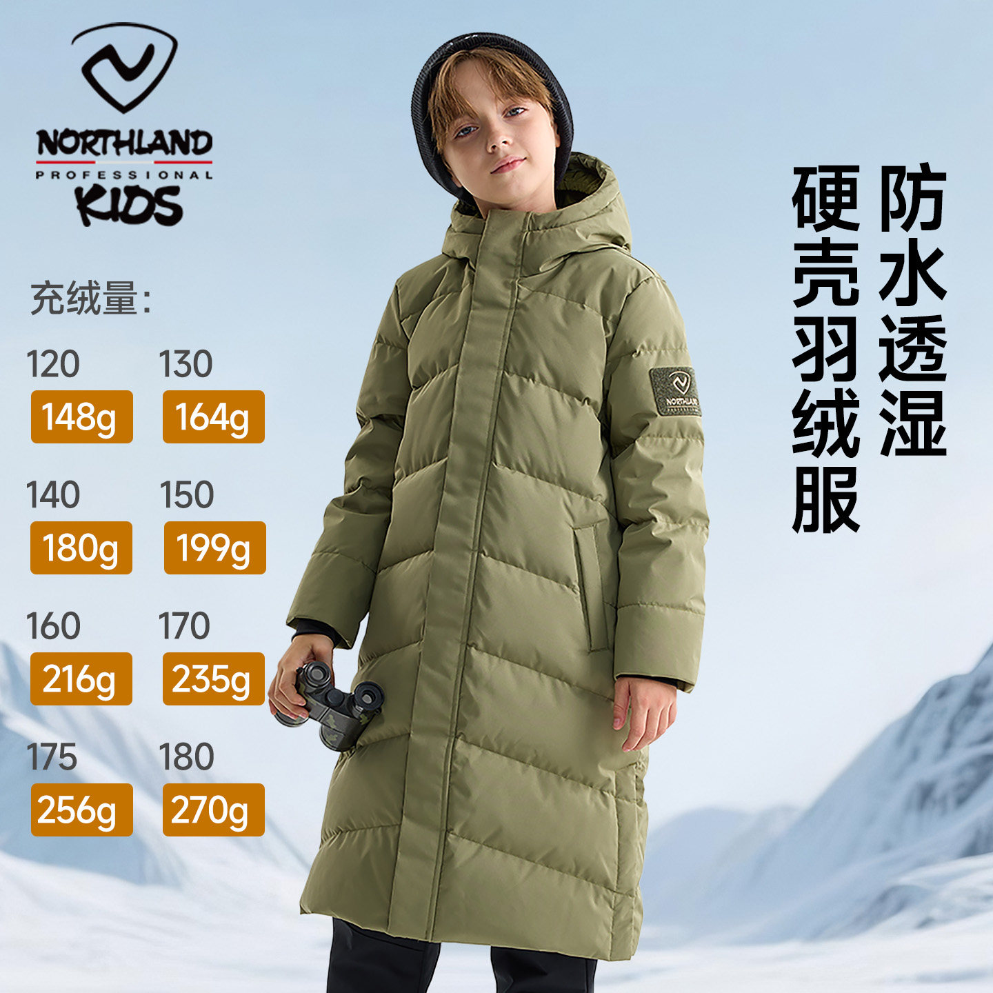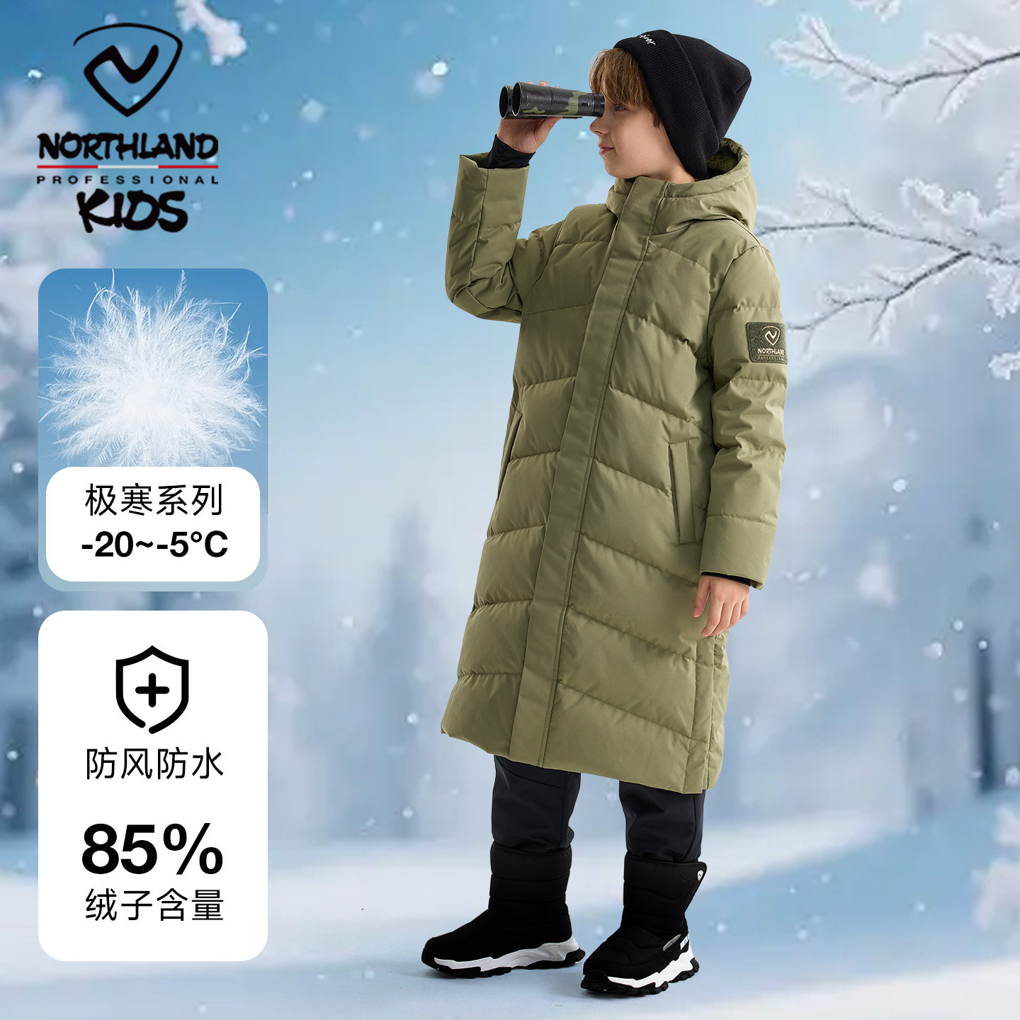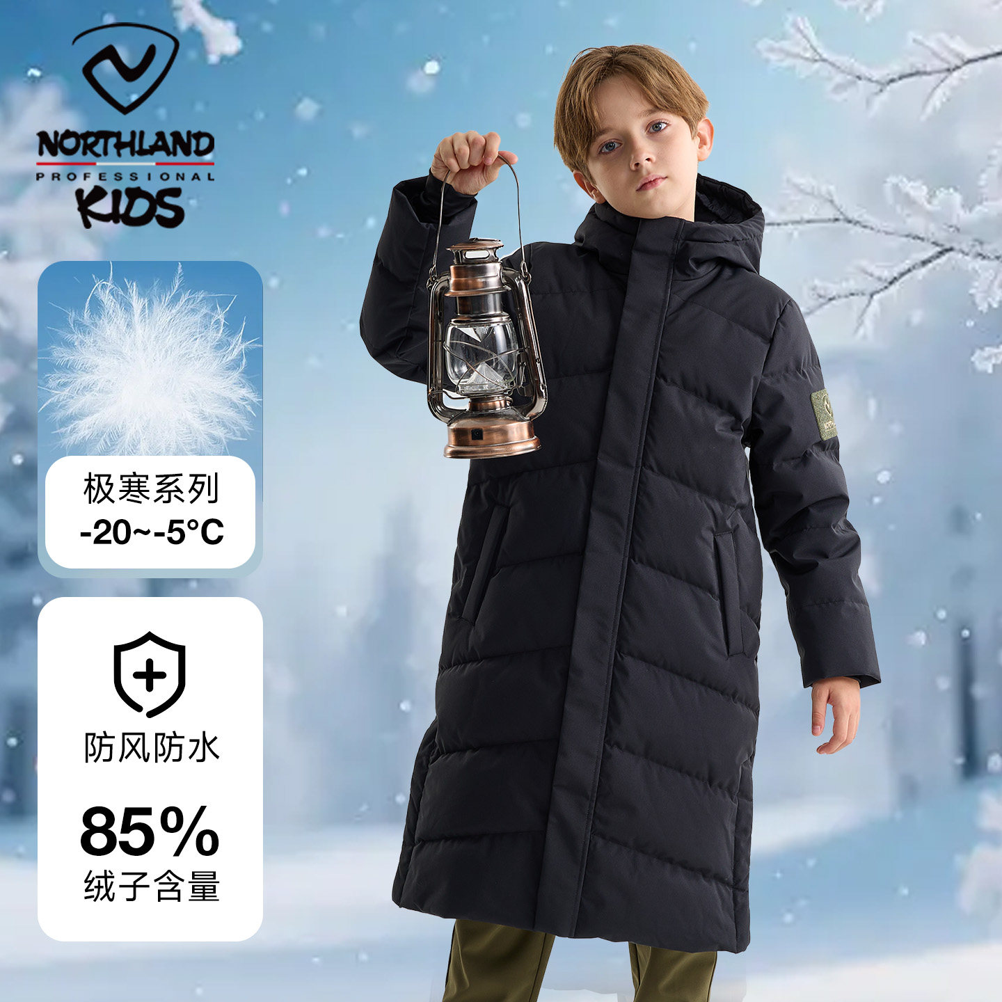诺诗兰儿童长款羽绒服2024冬季青少年过膝羽绒外套