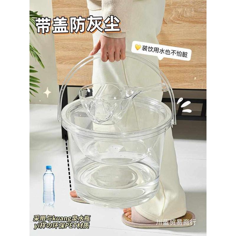 水桶家用储水用洗衣手提小水桶套装透明加厚带盖塑料桶学生宿川蓝