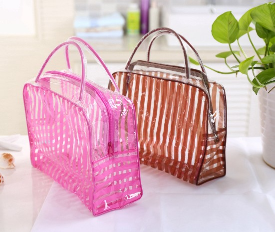 便携PCV加厚玫红洗漱包防暑品收纳袋化妆品手提包 防水拉链袋定制