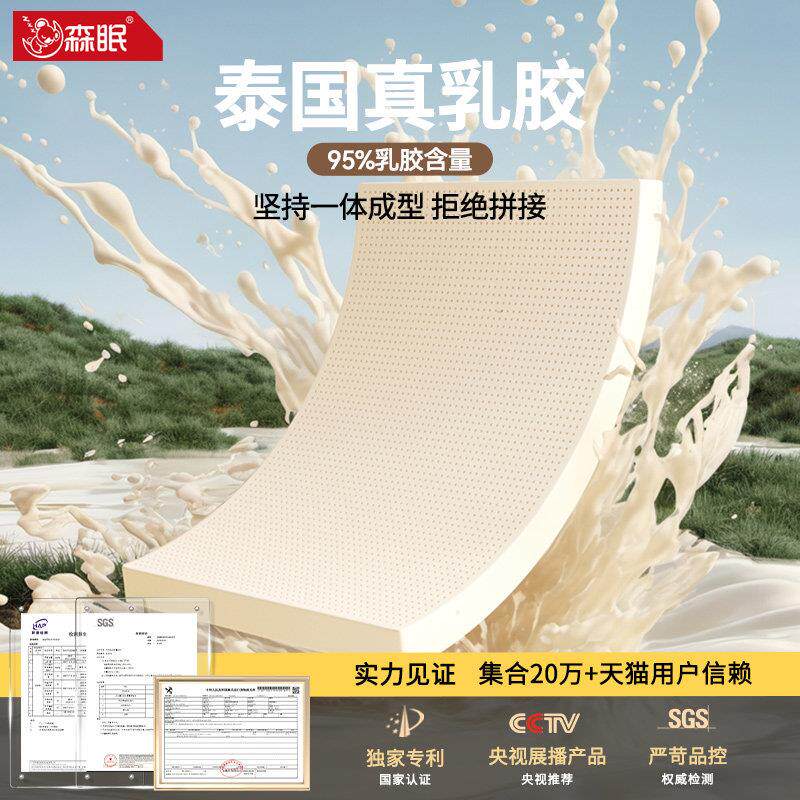 森眠进口泰国天然乳胶家用卧室软垫纯乳胶垫床垫橡胶宿舍学生单人