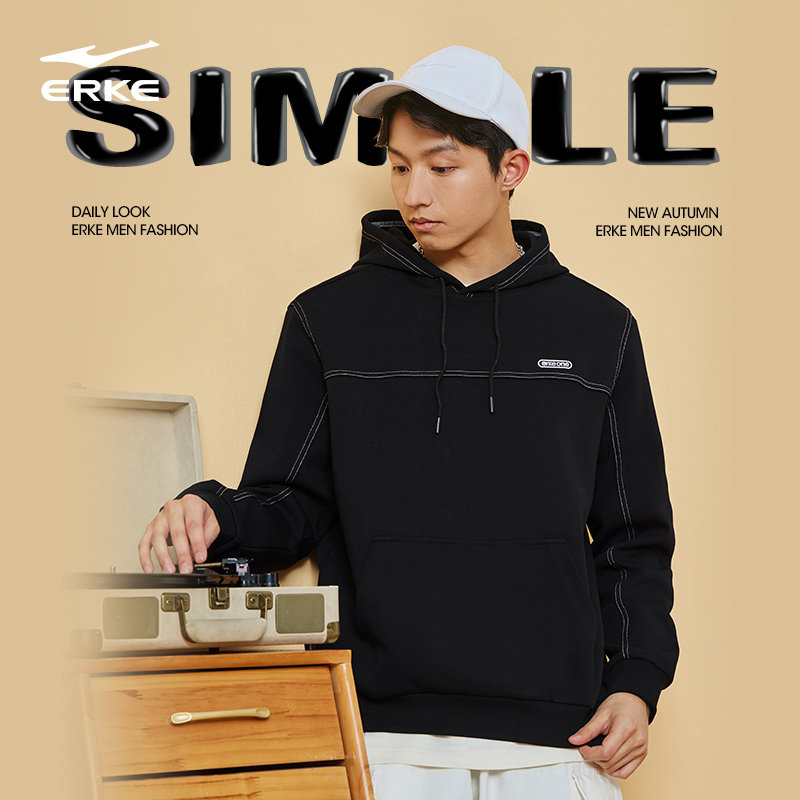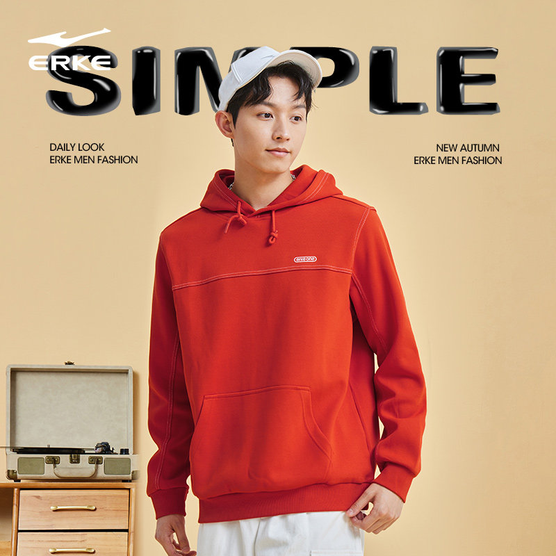 鸿星尔克卫衣男春秋男士运动休闲宽松套头连帽卫衣男款上衣帽衫男