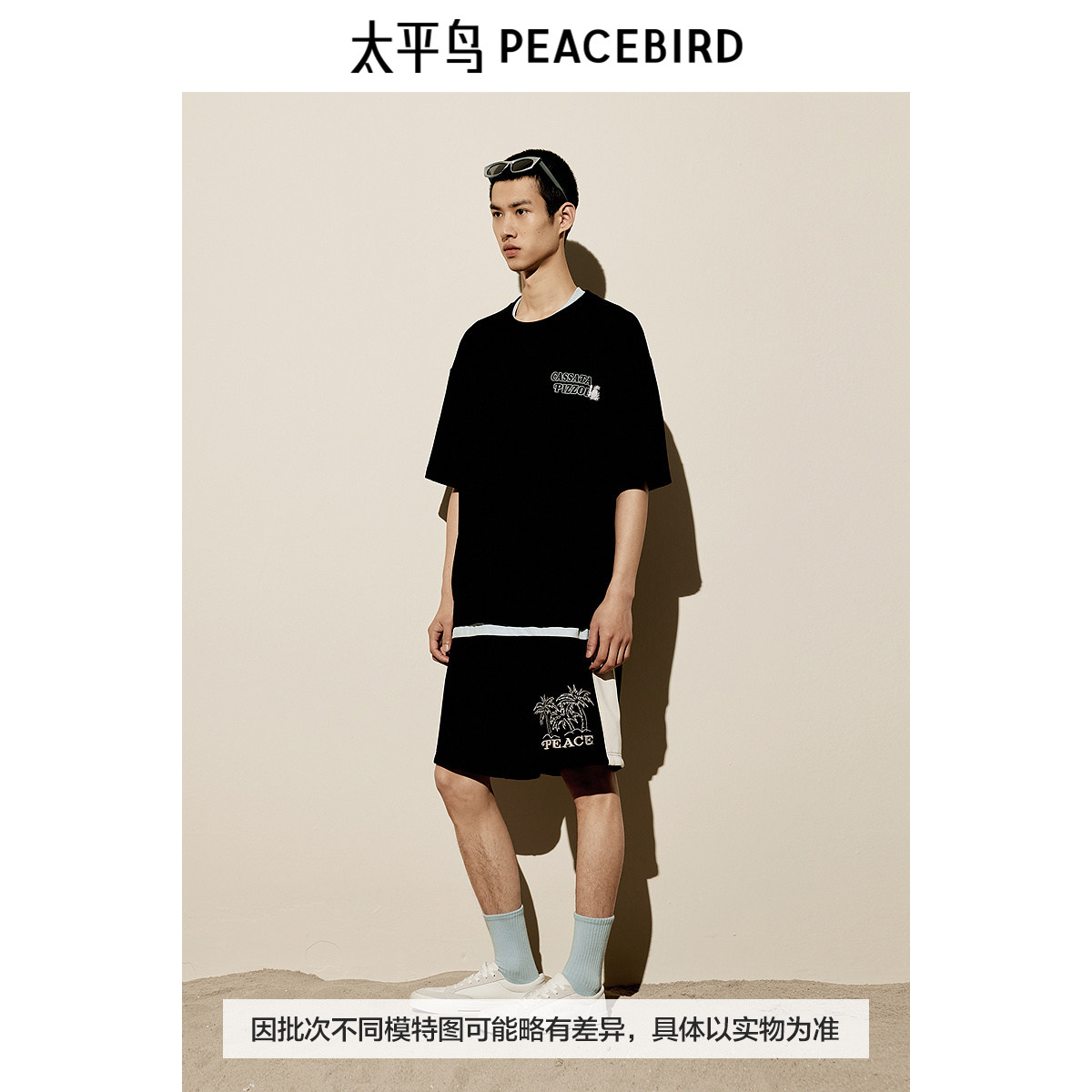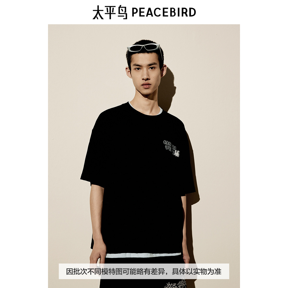 太平鸟男装T恤新款重磅宽松刺绣印花 B2CNE2607