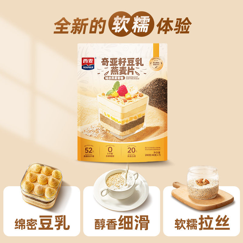 西麦奇亚籽豆乳燕麦片3袋独立装高蛋白冲饮健康即食营养早餐代餐