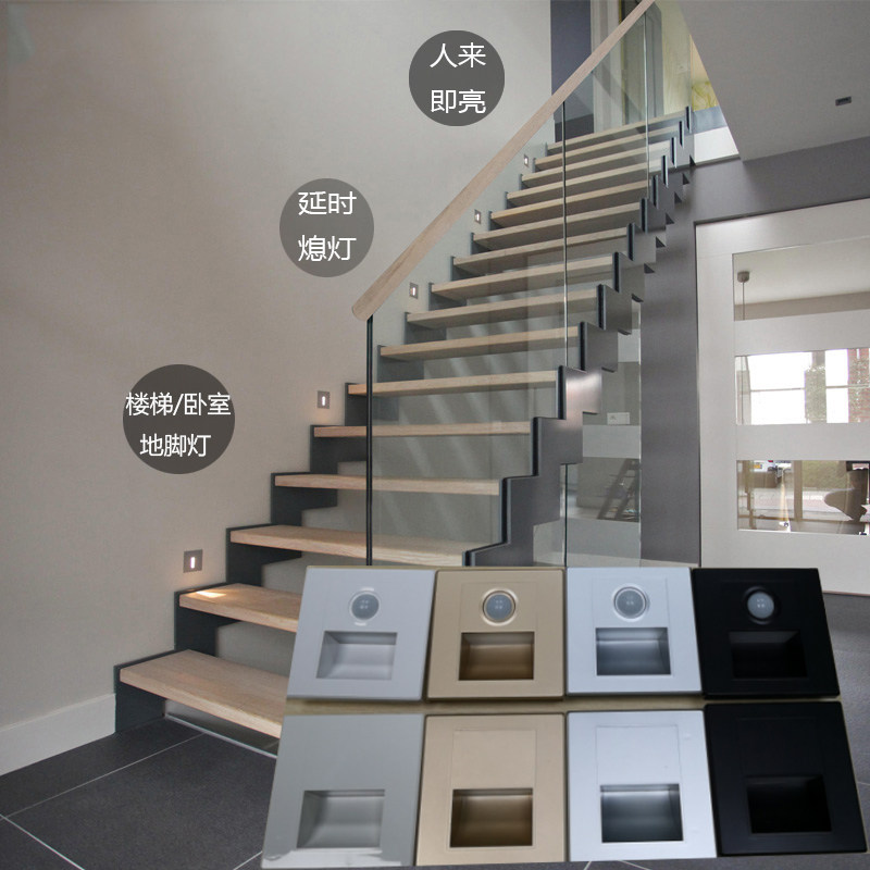 86型智能地脚灯嵌入式楼梯踏步灯led台阶人体感应走廊小夜灯过道