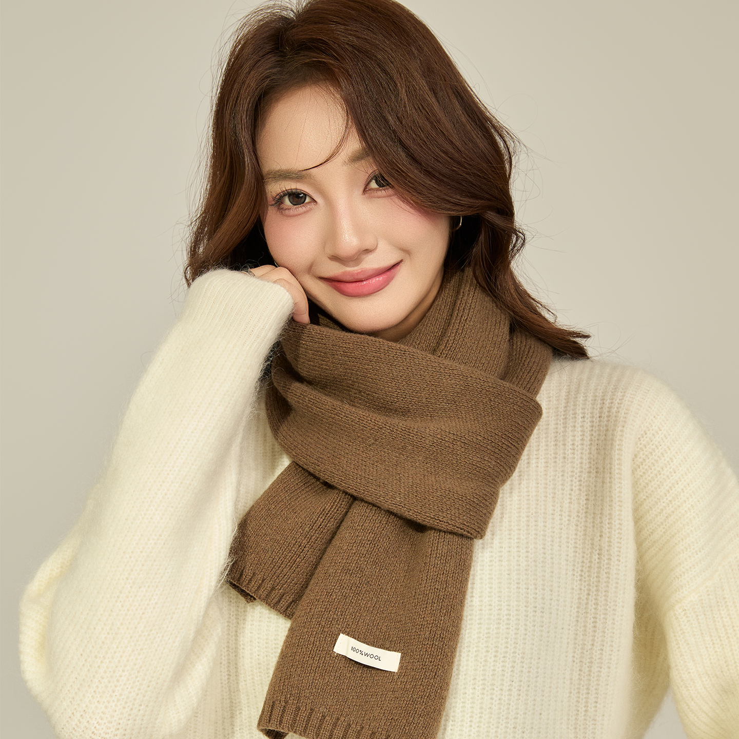 品质100%纯羊毛围巾女2025秋冬季加厚保暖防寒情侣款纯色针织围脖